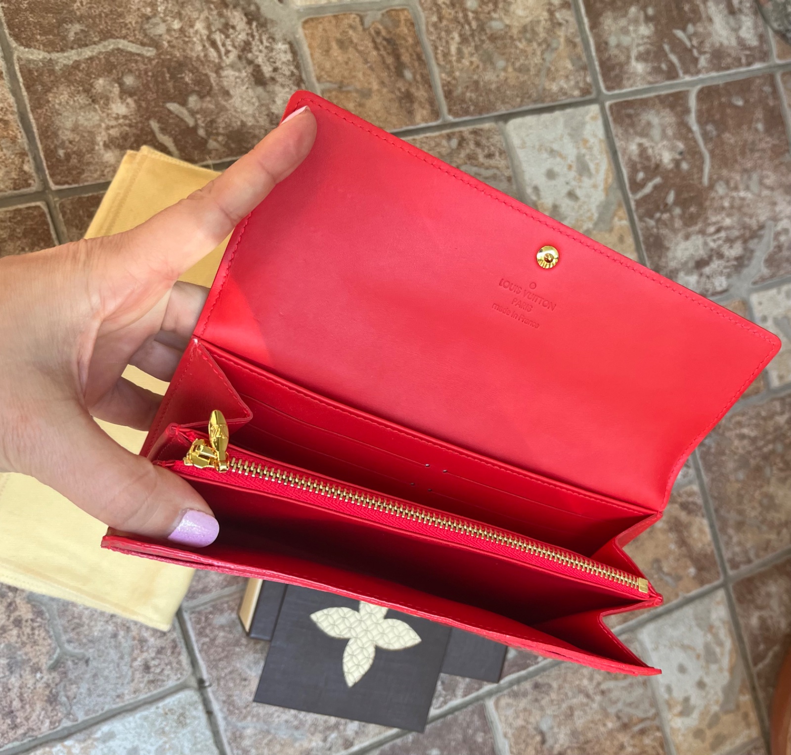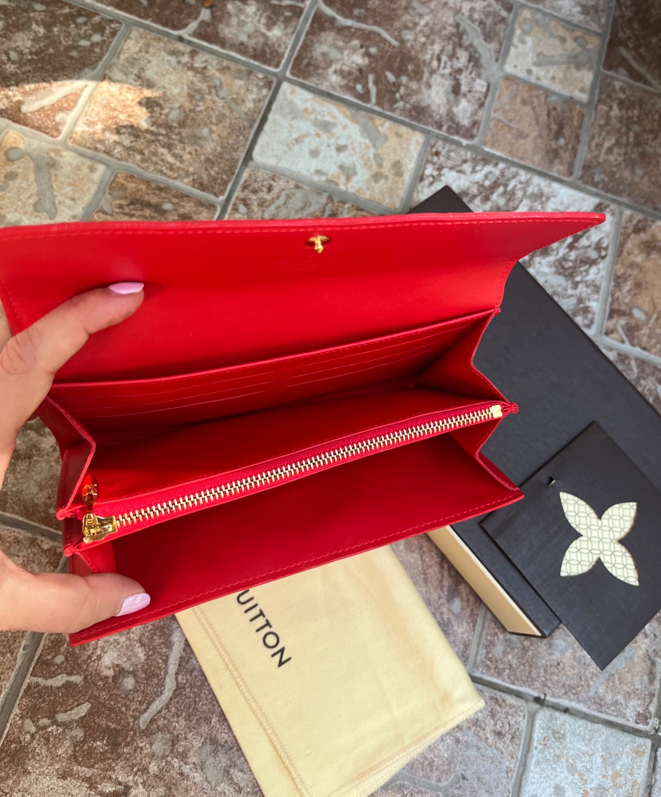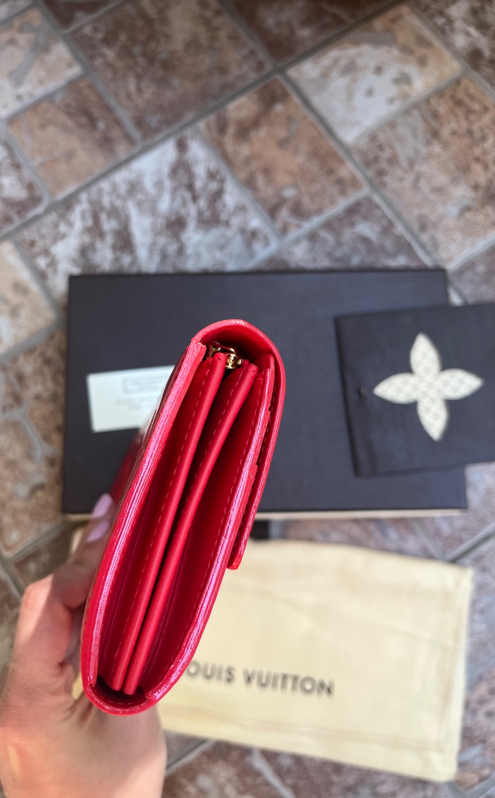 Louis Vuitton Sarah patent leather peňaženka s komplet balením - dustbag,krabica,kartičky, doklad