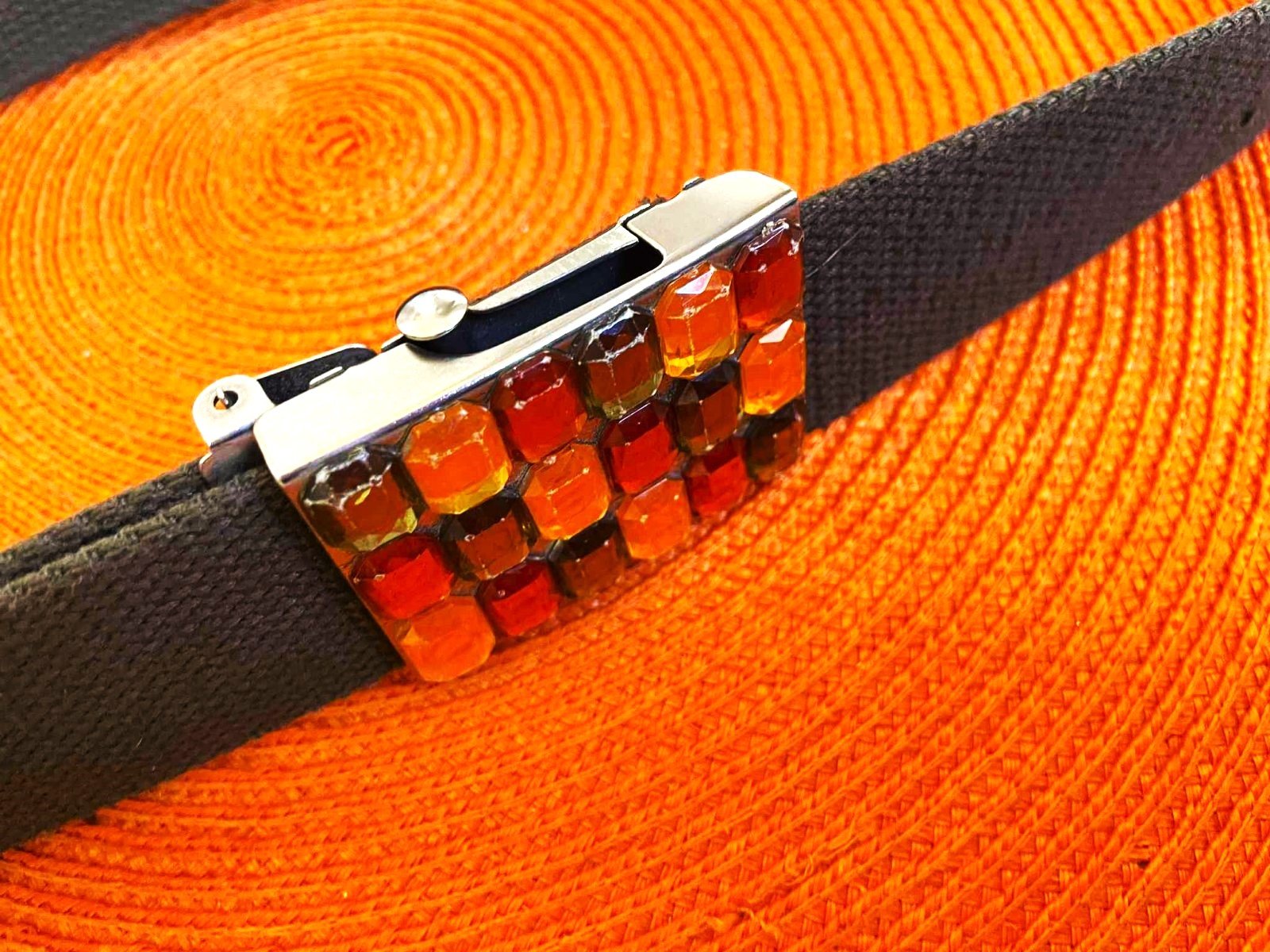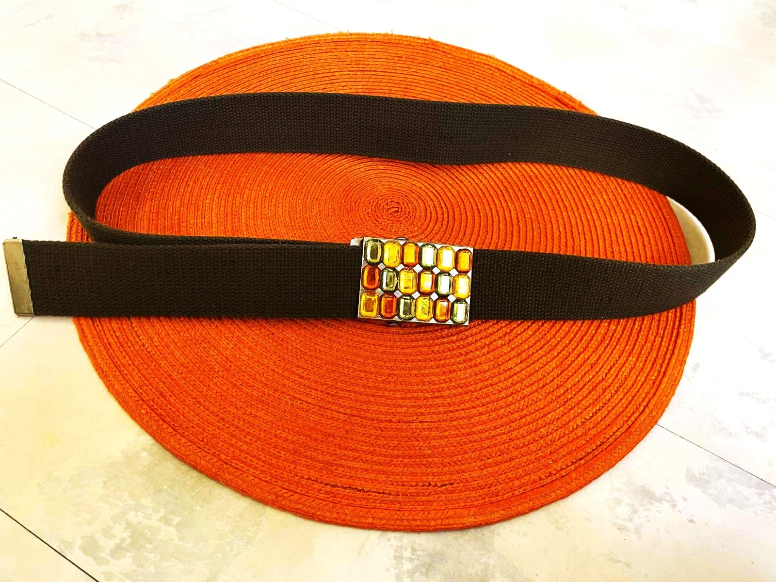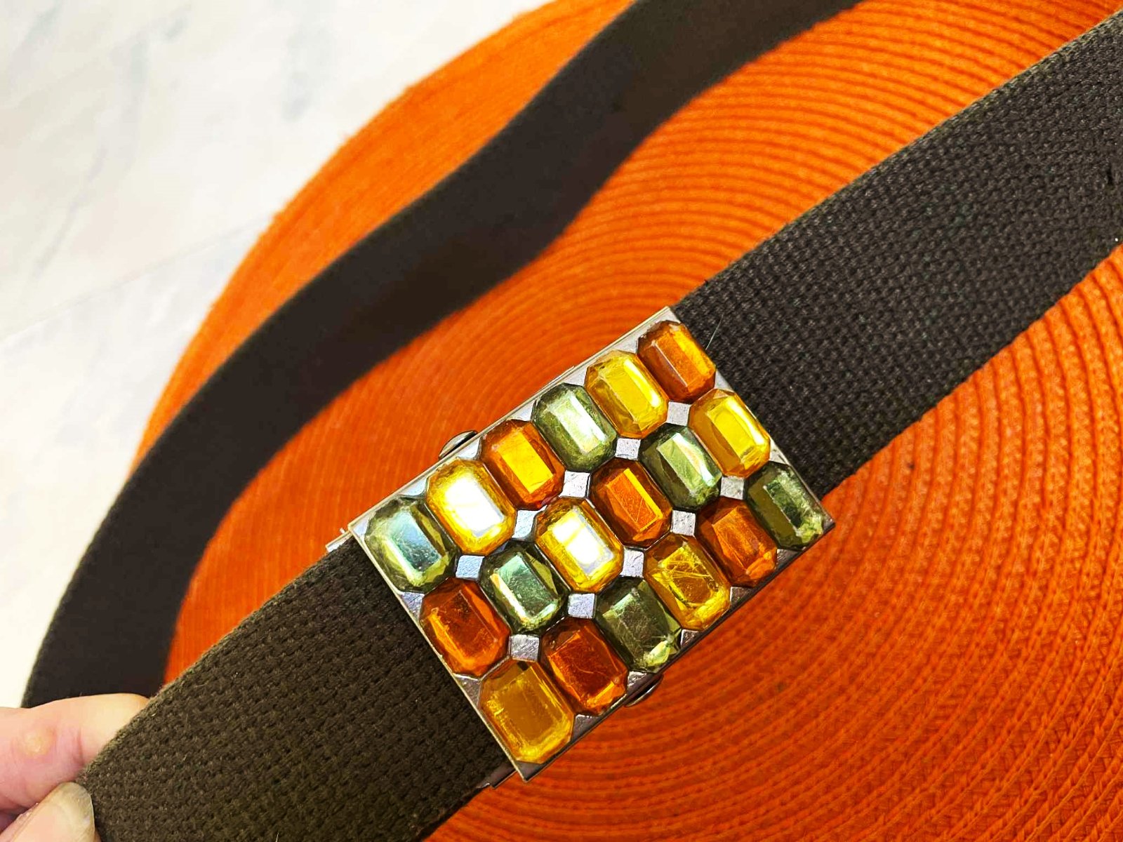 min.nosený krásny netuctový opasok - spona vykladaná z krásnych kamienkov,materiál pevná látka - juta vo farbe khaki,nastaviteľný obvod,výbirné pevné kovové zapínanie