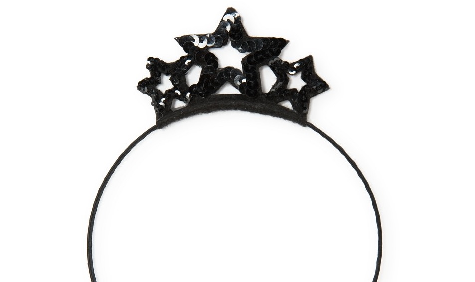 Moderná čierna čelenka, korunka je zložená z hviezdičiek ozdobených čiernymi flitrami, značka Mango Kids, veľmi kvalitná, univerzálna veľkosť na cca 3-12 rokov, dostupné 2 ks. Kód 33055574.