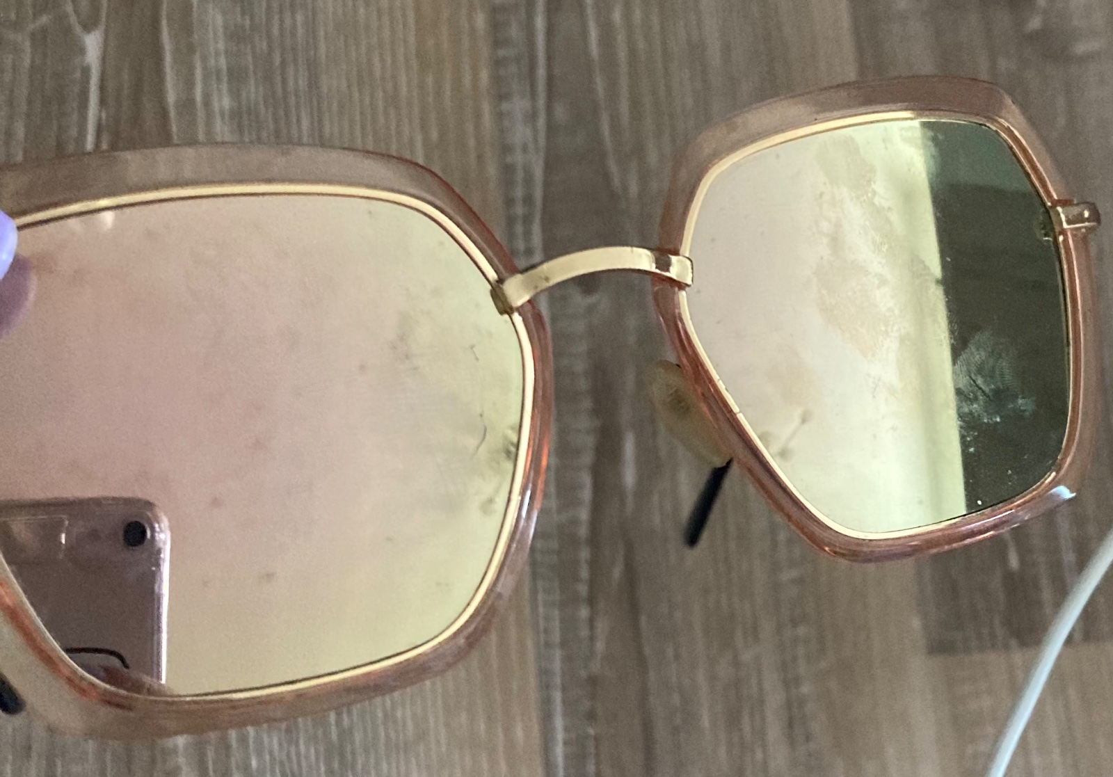 Mierne Škrabančeky na skle pri nosení nieje vôbec vidieť..od dnu sú pekne tmavé ako vidíte na foto..vnútro nieje poškriabané..len vonkajšok.