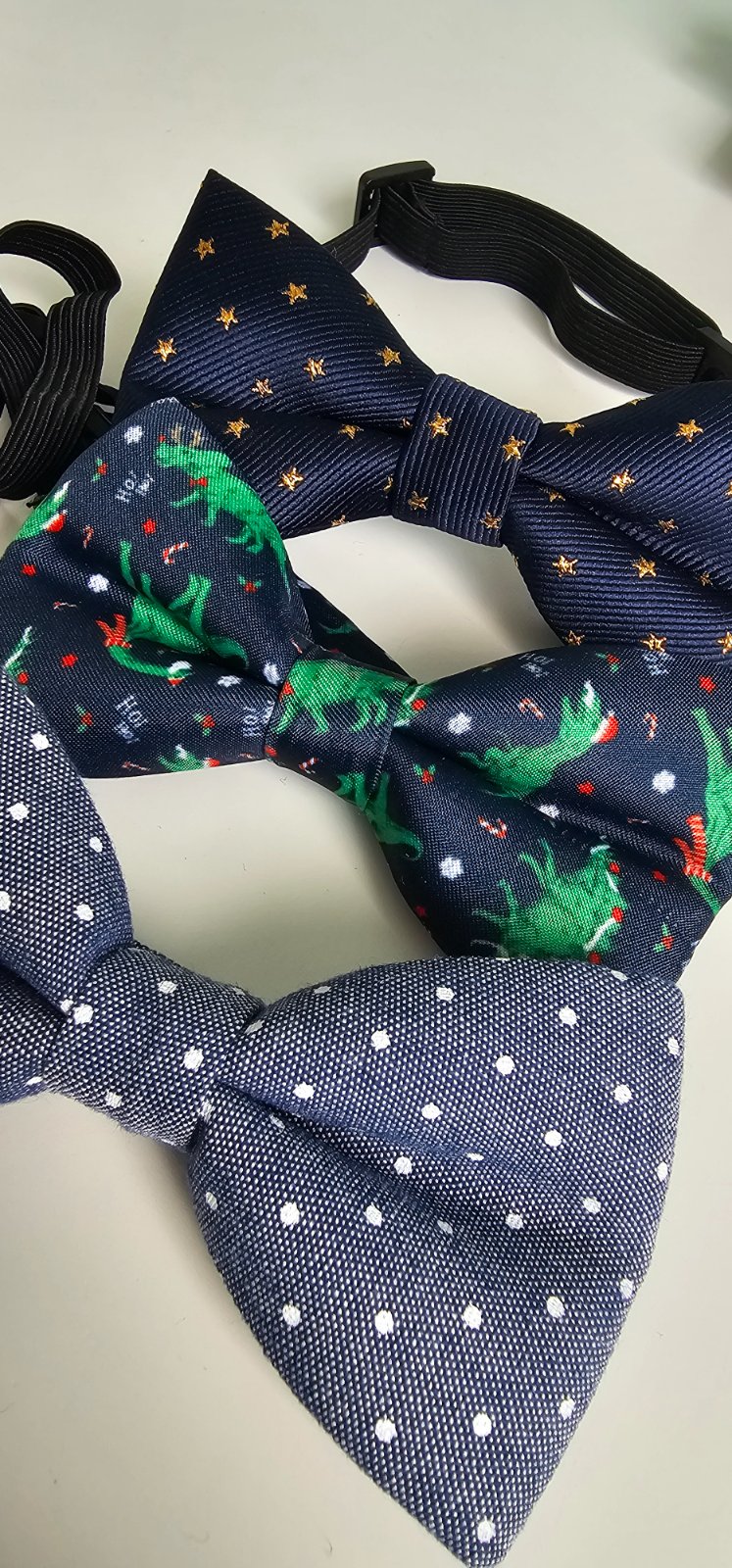 Príležitostné nosené motýliky, nepoškodené. Praktické zapínanie a gumička s možnosťou prispôsobenia obvodu krku. Veľkosť cca 10cm každý. Cena 5e za kus