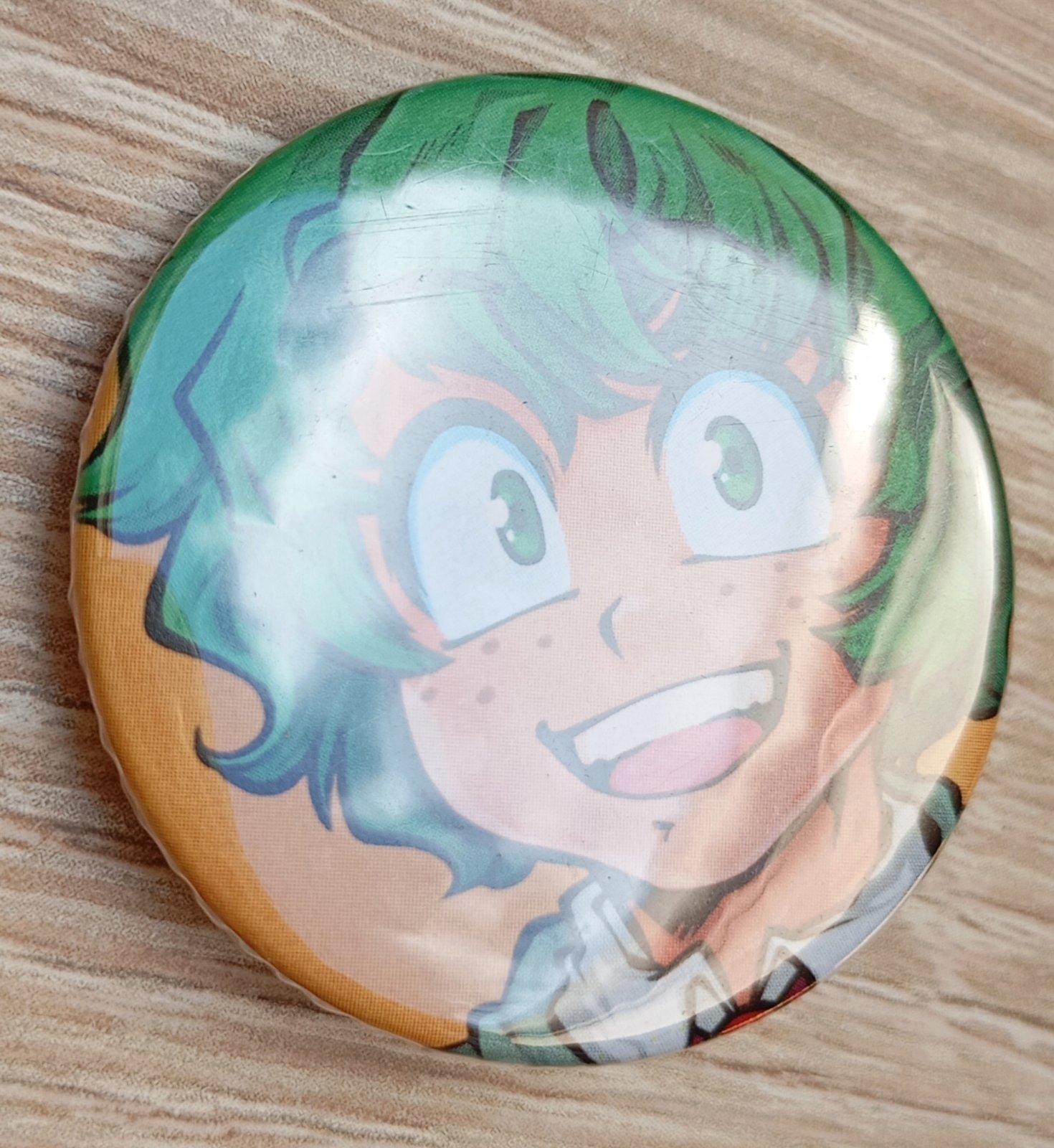 Malý odznak/pripináčik s obrázkom postavy Izuku Midoriya (známy aj ako hrdina 'Deku') z anime a manga série My Hero Academia (Boku no Hero Academia).