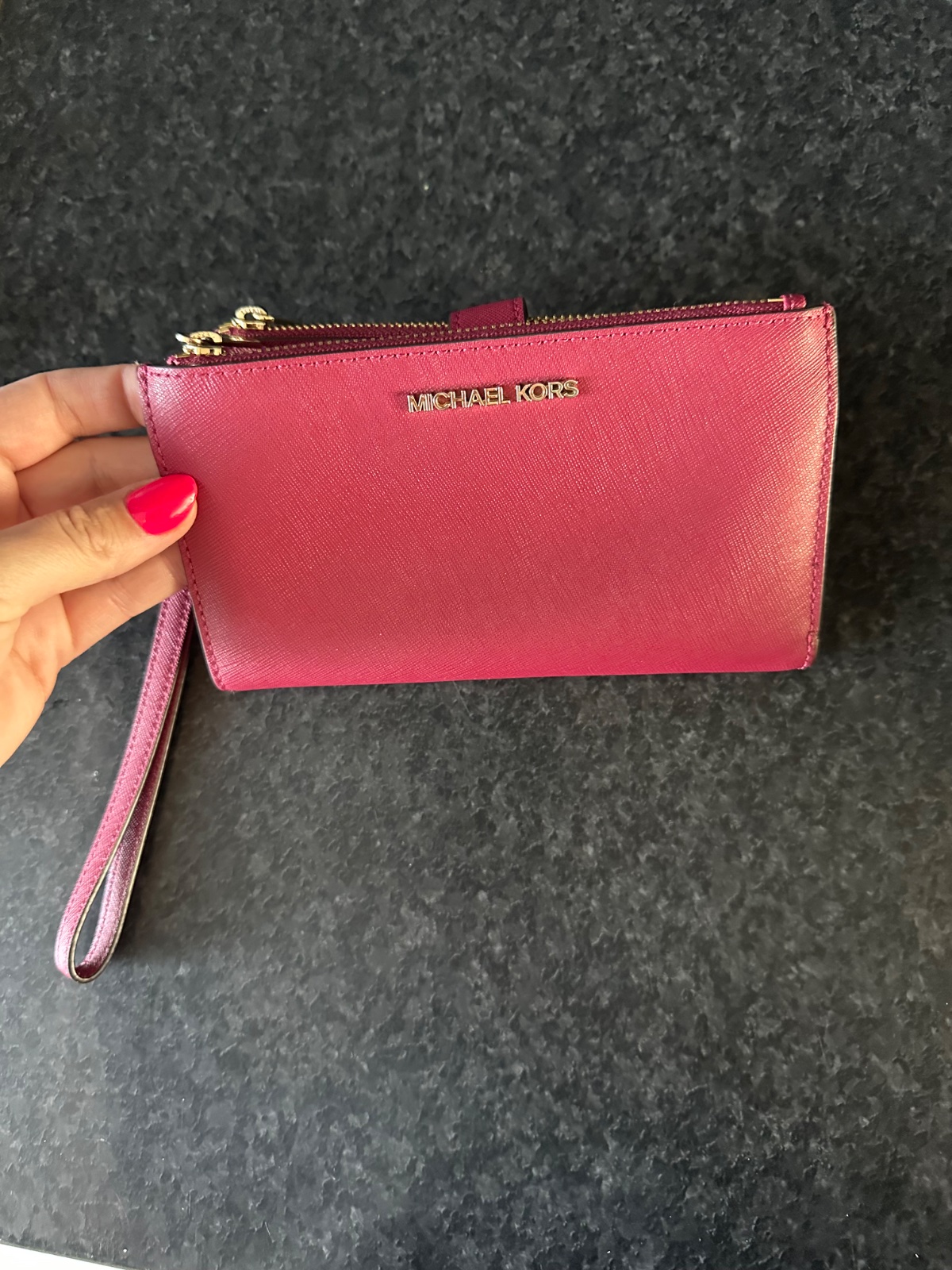 Predám koženú wristlet peňaženku originál značka Michael Kors. Materiál saffiano koža. Rozmer 17x10cm Bez poškodení