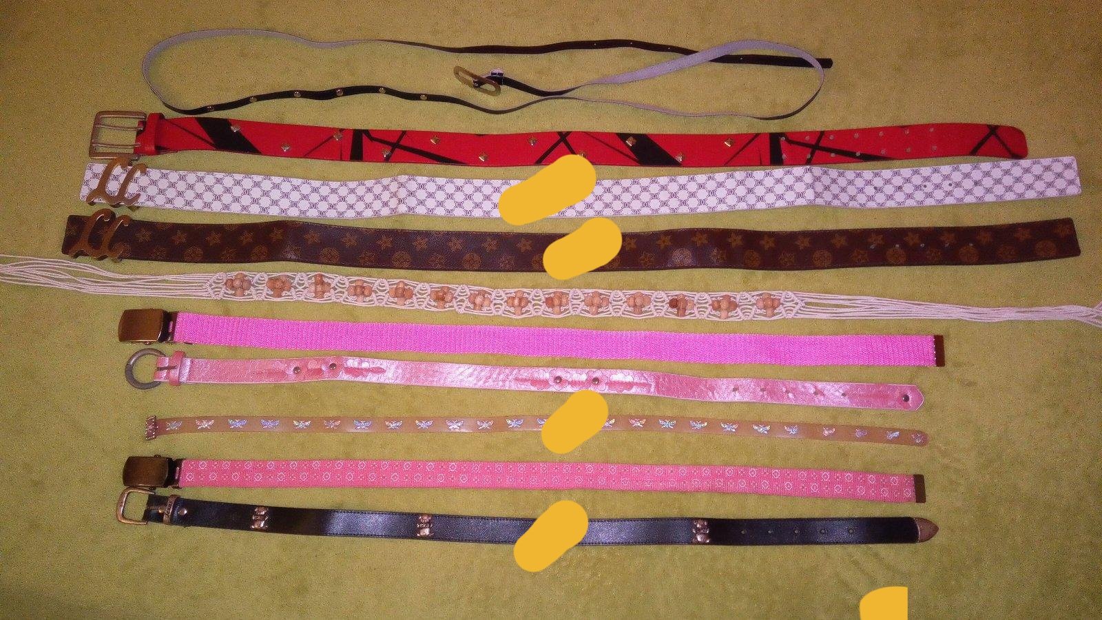Opasky cca 75 cm, ostatné 95- cca100 cm, v peknom stave, niektoré nové .Čierny úzky, dlhý, vybíjaný 2 bm.