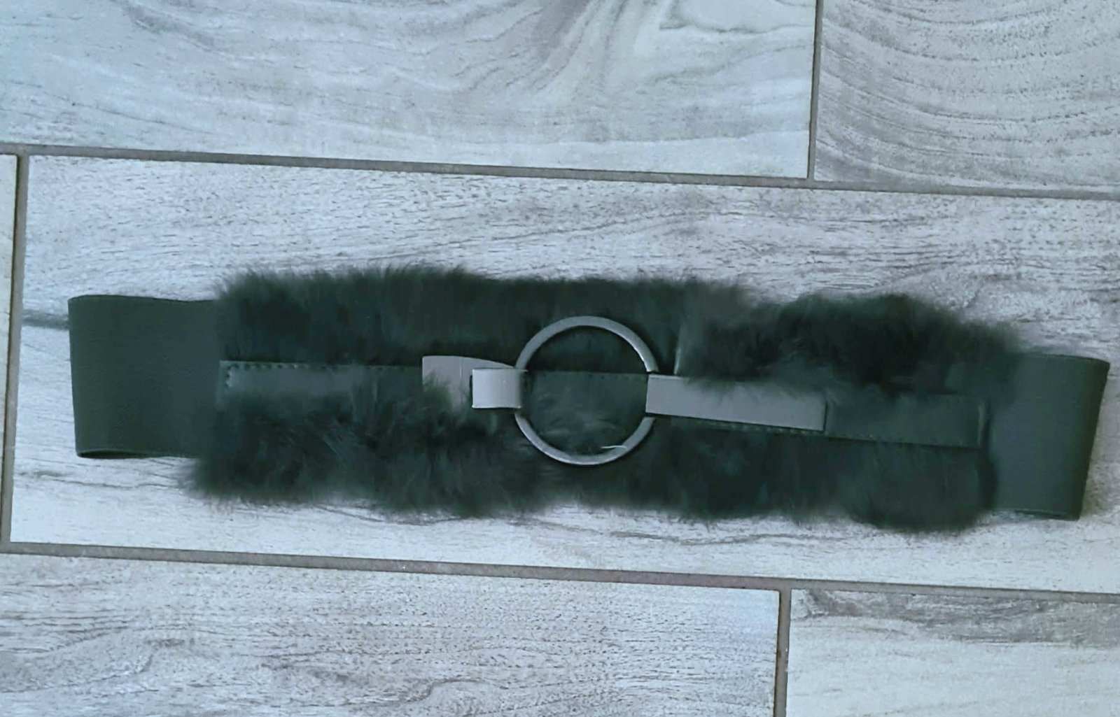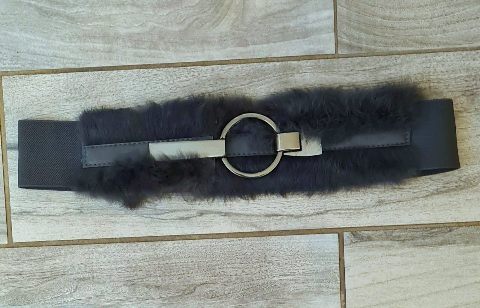 Krásny nadčasový opasok s pravou kožušinou. Oživý šaty, kabát, bundu a dodá eleganciu.opadok ja do gumy. Dĺžka opaska v kľude 84cm, šírka 6cm.