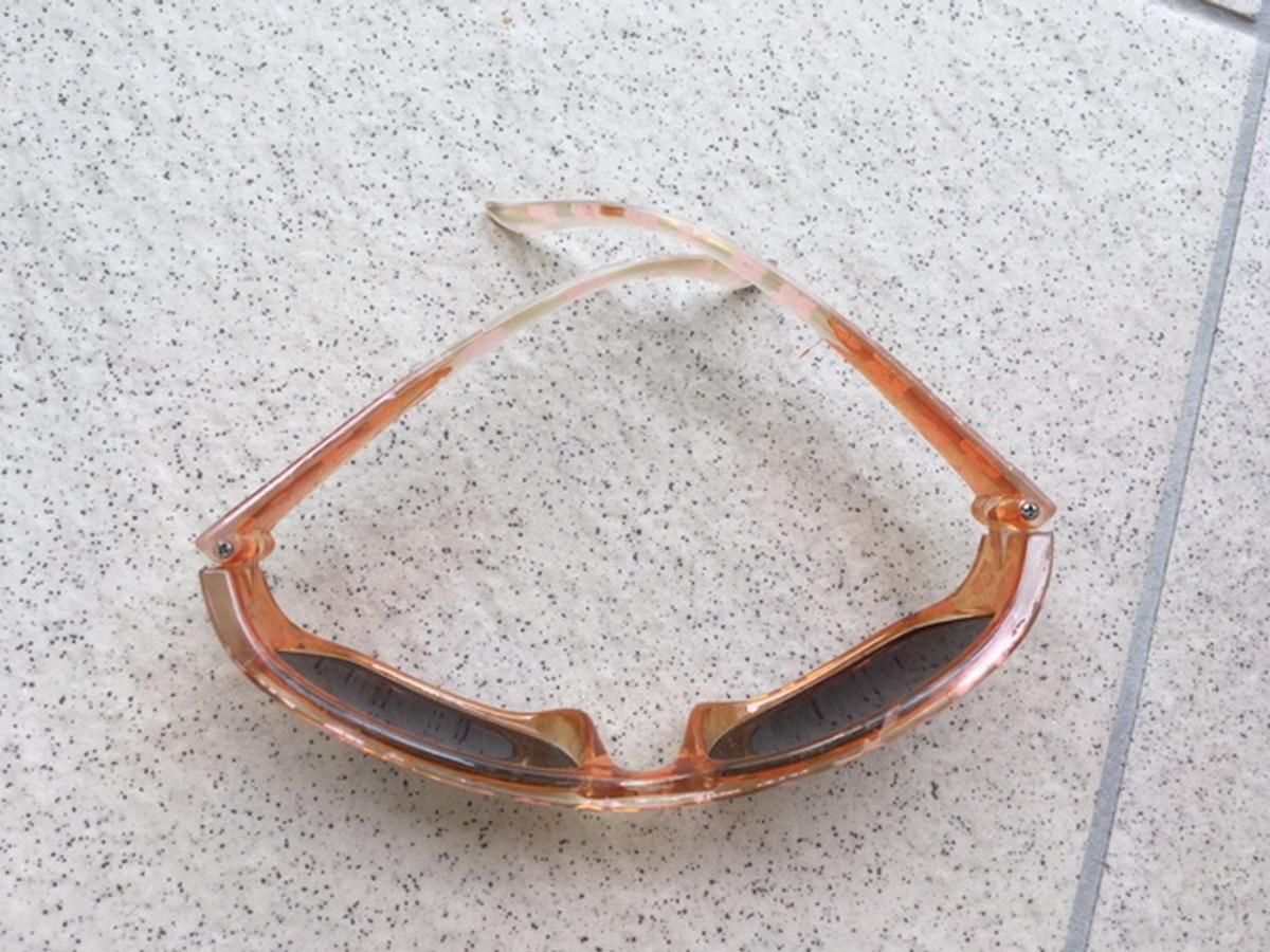 Detské slnečné okuliare pre dievča s plastovými obrúčkami v bledohnedej farbe s kvetinkami, tipujem pre 2-3 ročné deti