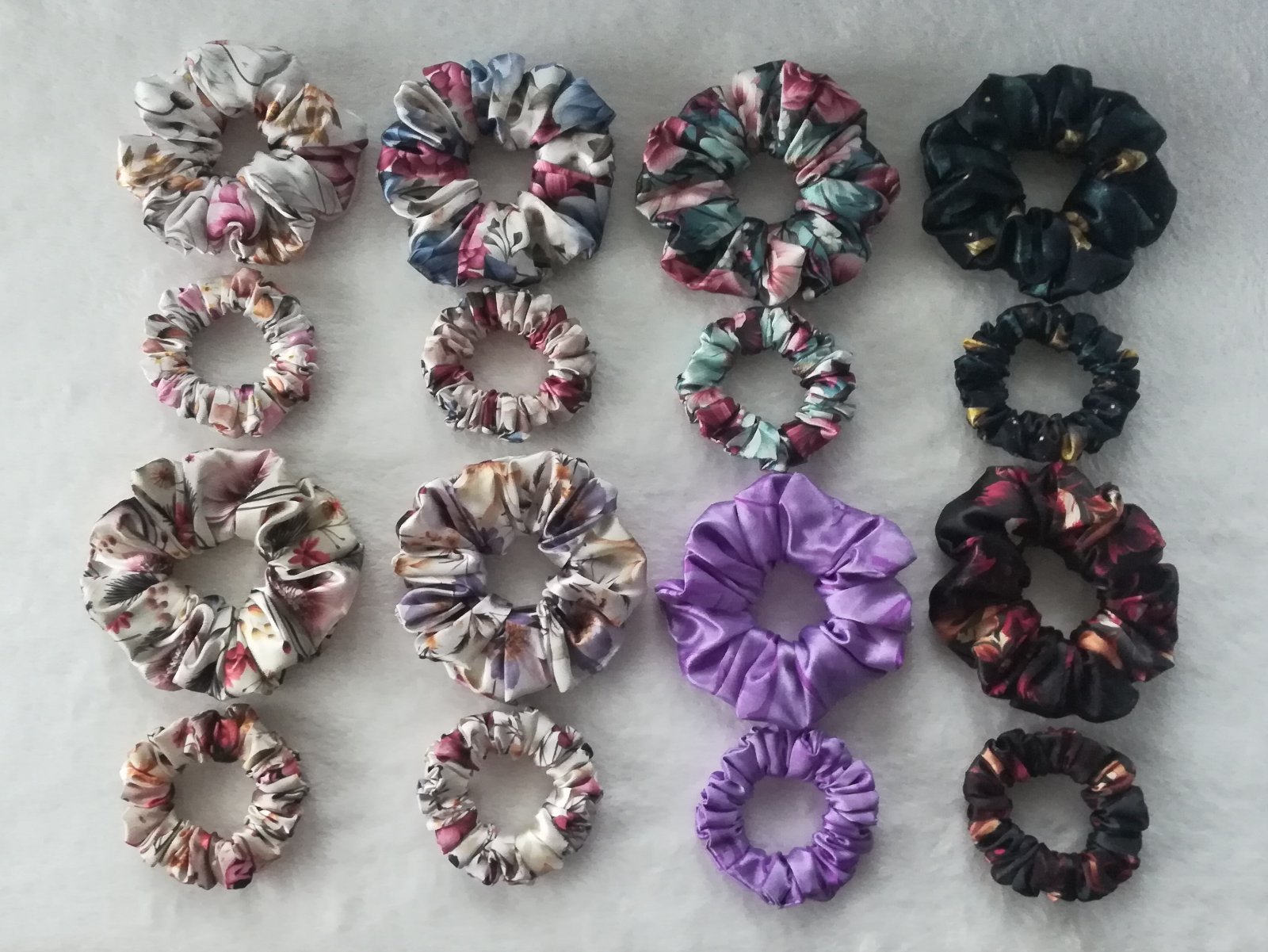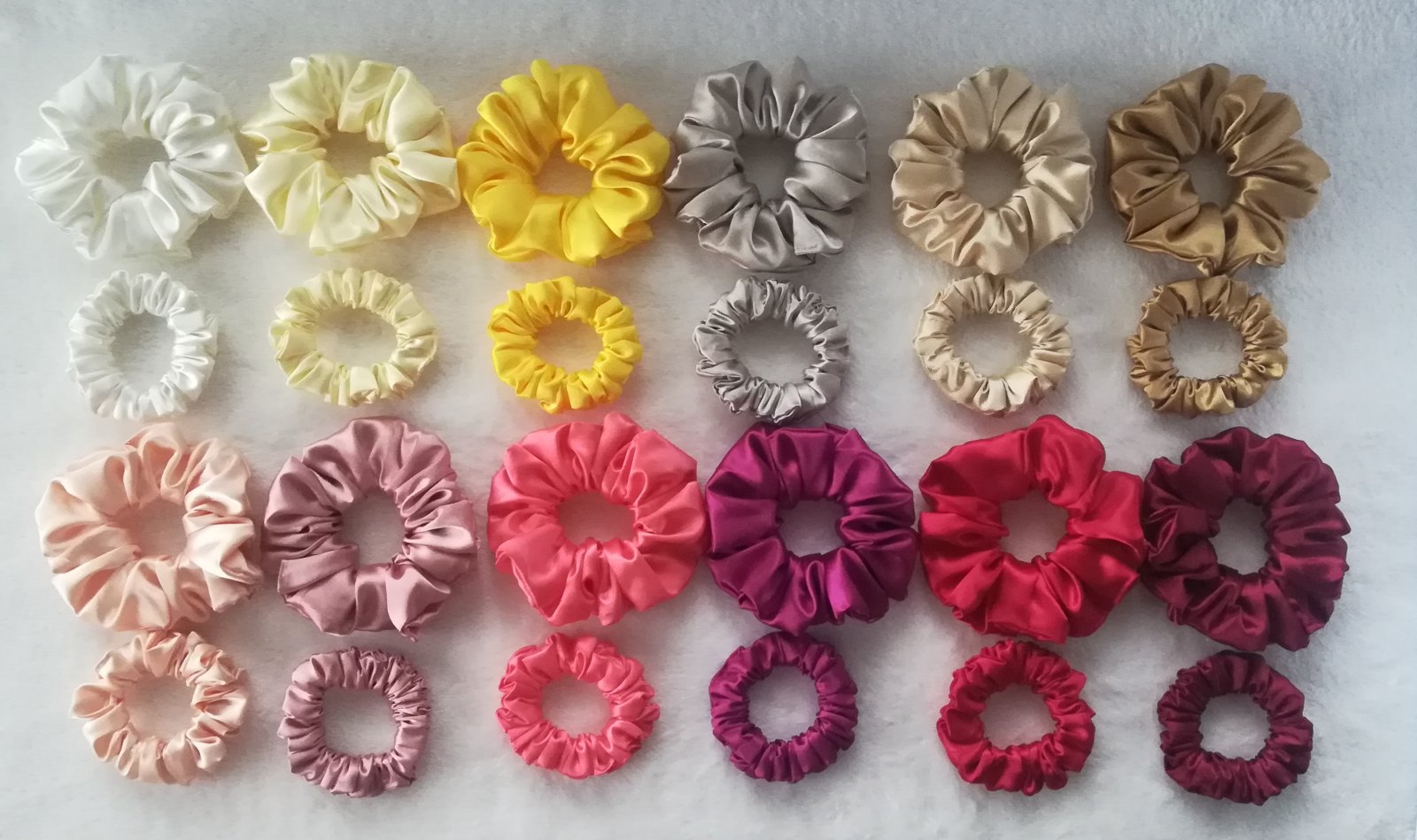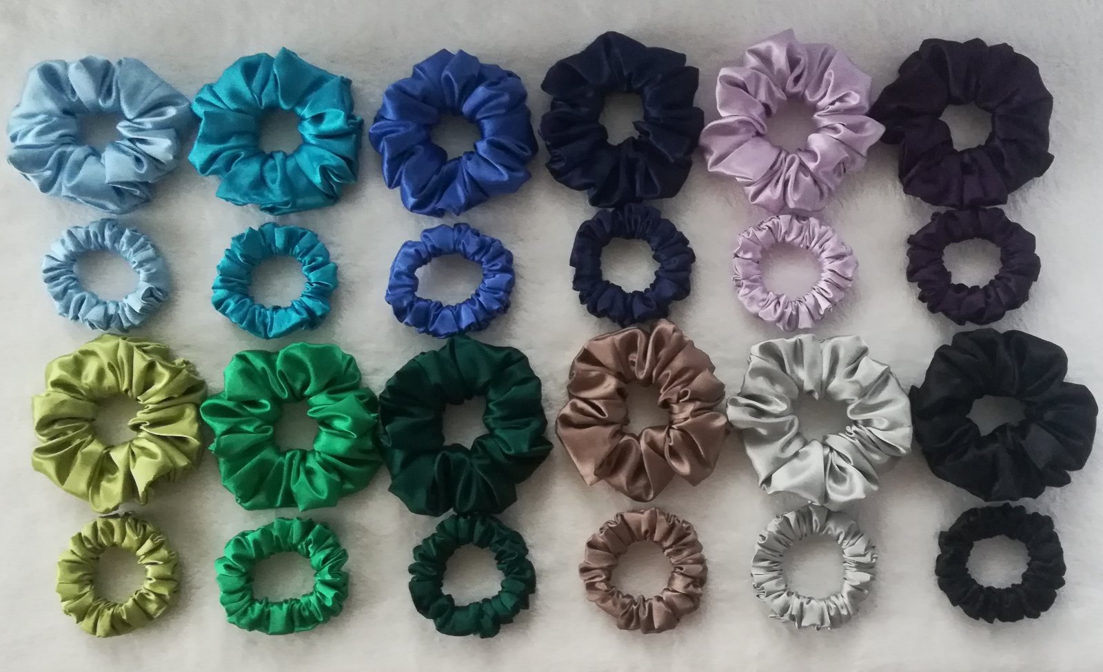 🔸saténové a bavlnené gumičky do vlasov v troch veľkostiach a vo viac ako 40 farbách/vzoroch,