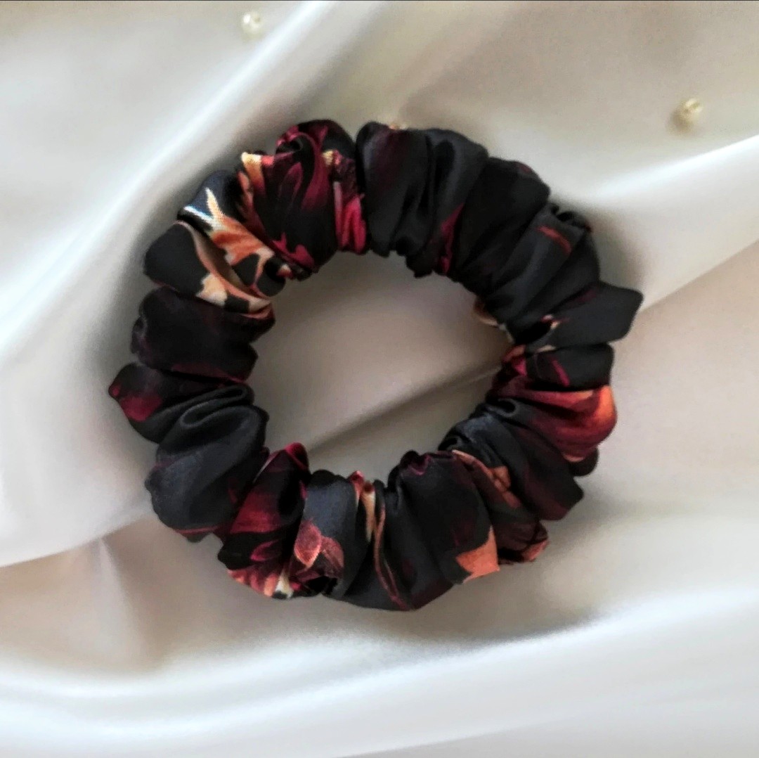 Saténová scrunchie je bohato riasená, krásne drží Vaše vlasy a môžete ju obmotať okolo copu 2-3 krát, záleží od hustoty Vašich vlasov. Gumička neťahá a nenamotáva vlasy. V ponuke mám veľký výber farieb, od klasických, neutrálnych, výrazných až po rôzne vzorované.