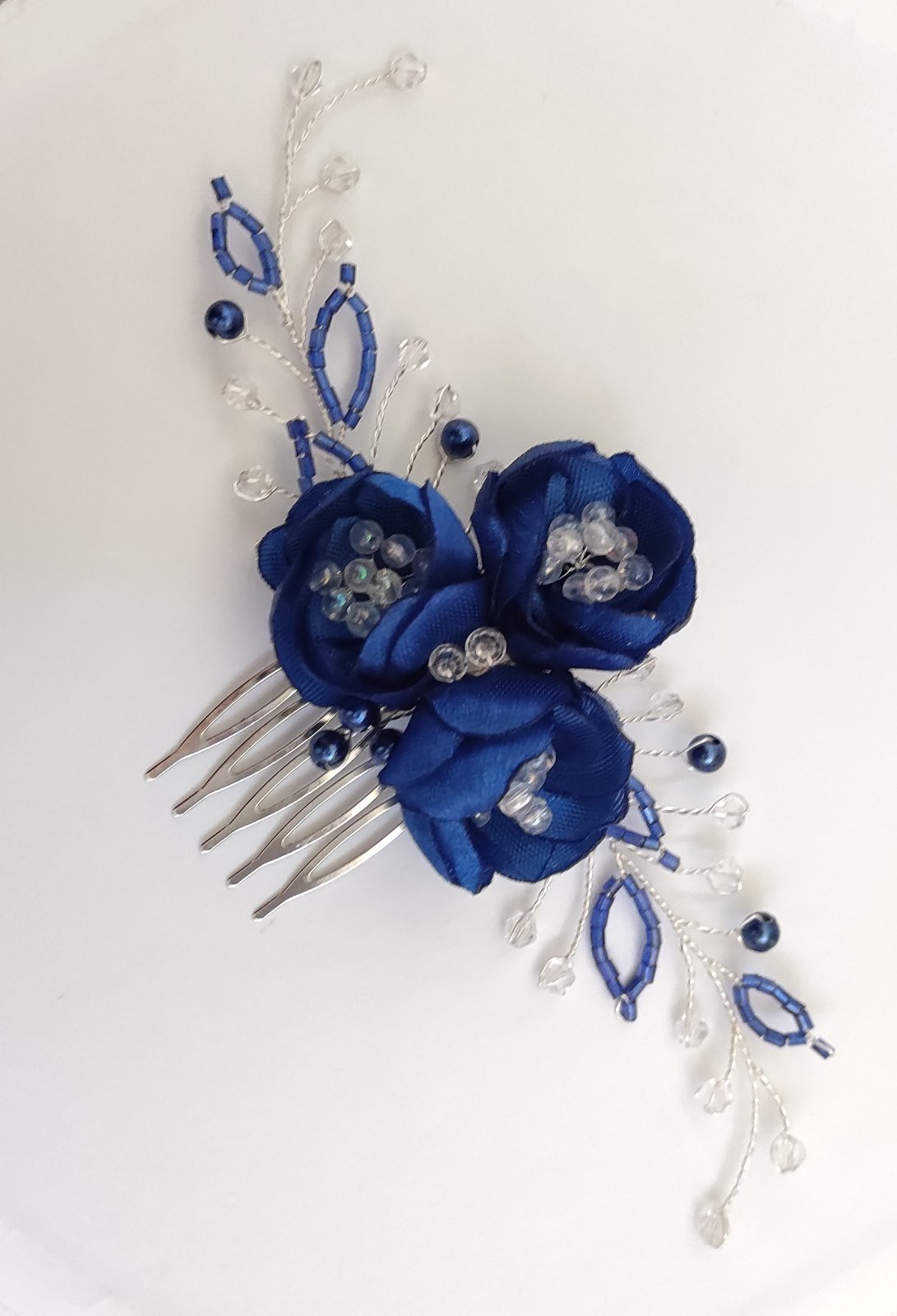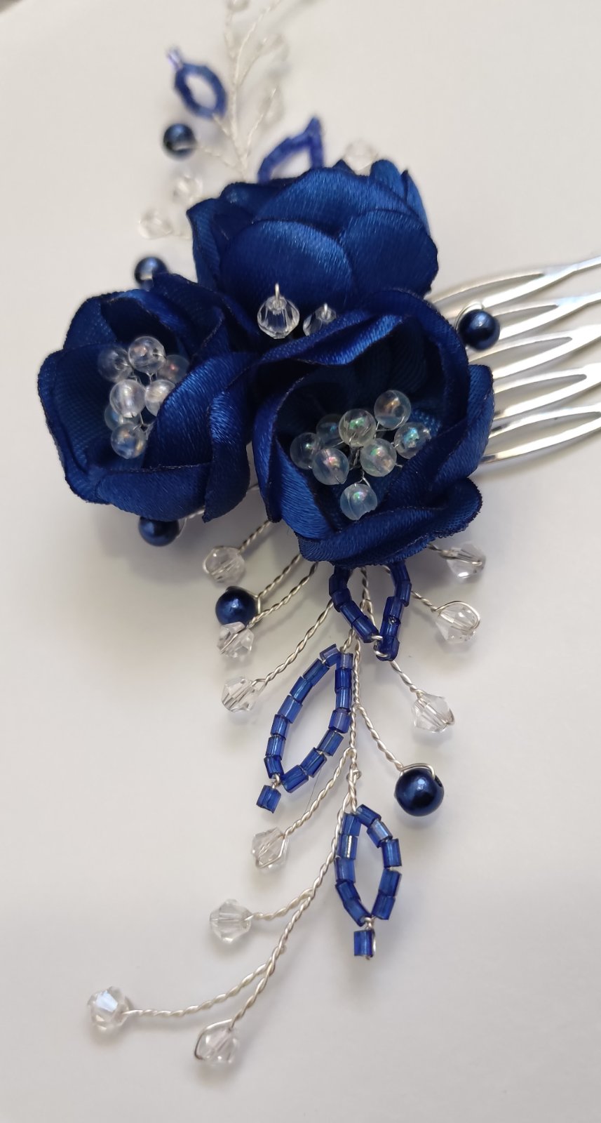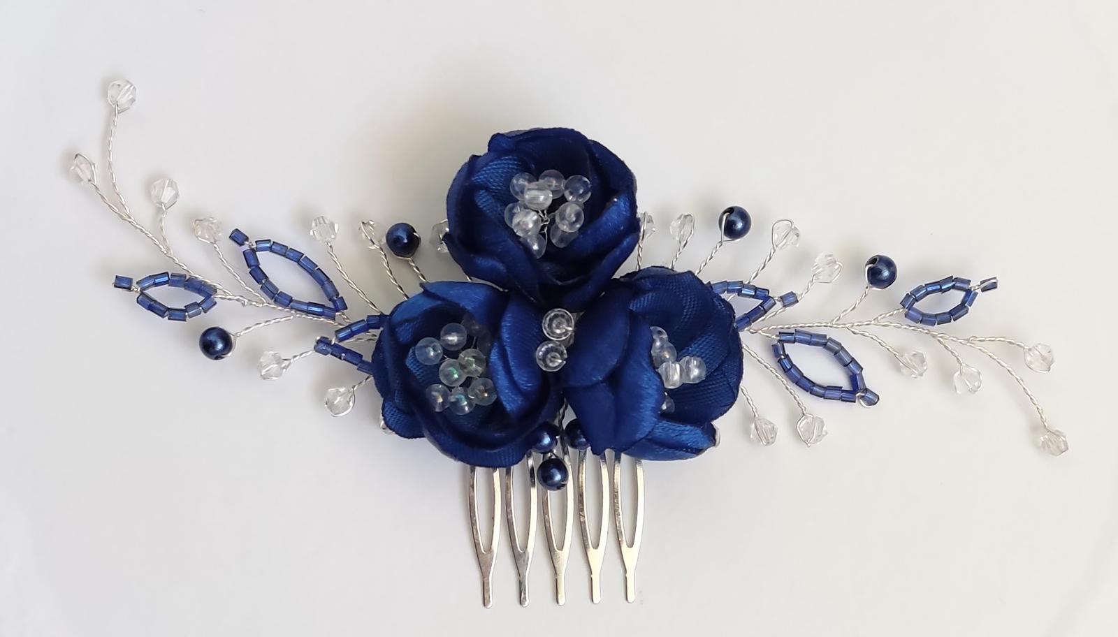 Elegantná ozdoba do vlasov v kráľovskej modrej, ručne vyrobená s dôrazom na detail.