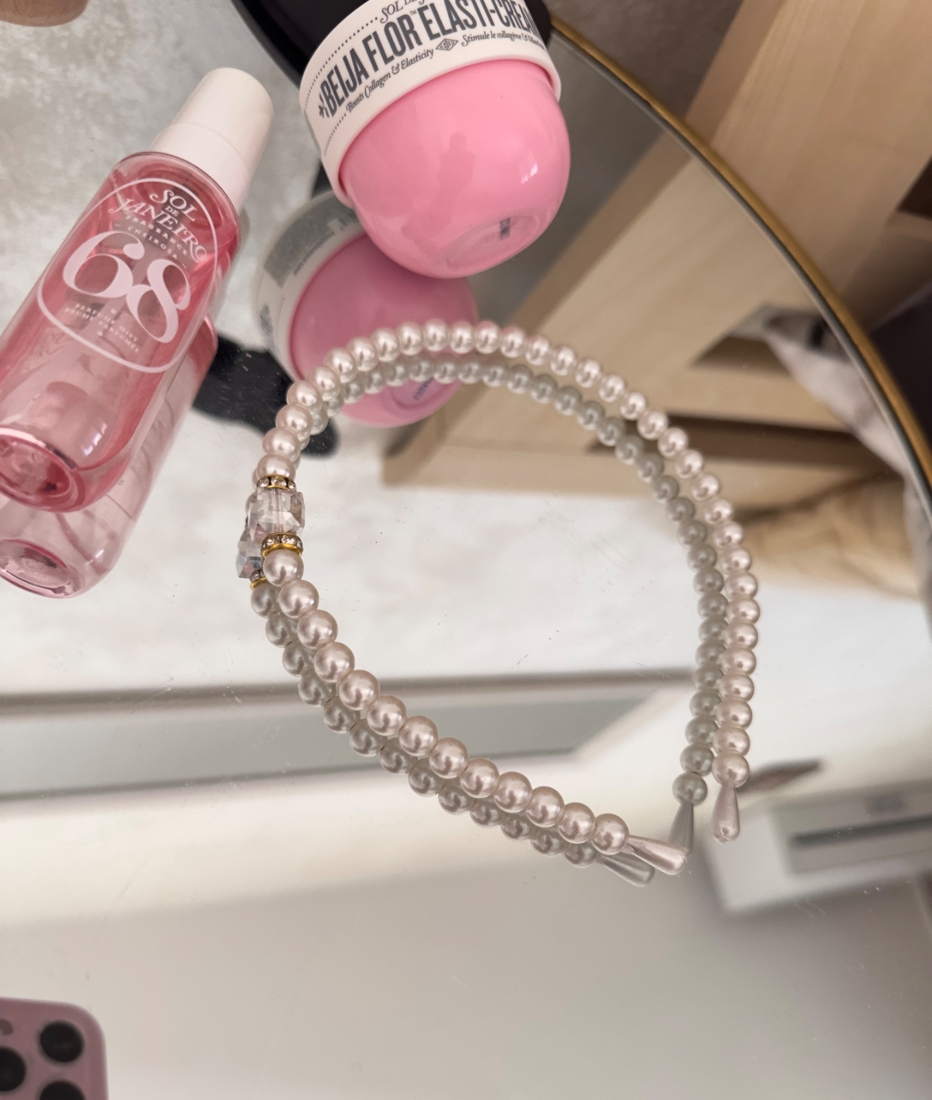 Krásna čelenka s perlami. Zlatý detail s kamienkami.