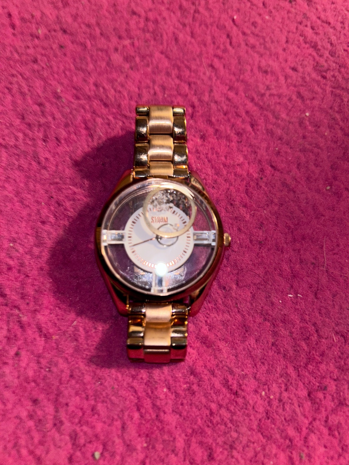 Nadherne hodinky v zlatom prevedeni s hnedym cifernikom. Po obvode sklicka su kamienky. Vsetko v original baleni, nosene prilezitostne lebo som mala viac hodiniek. Dovod predaja je vzniknuta alergi...