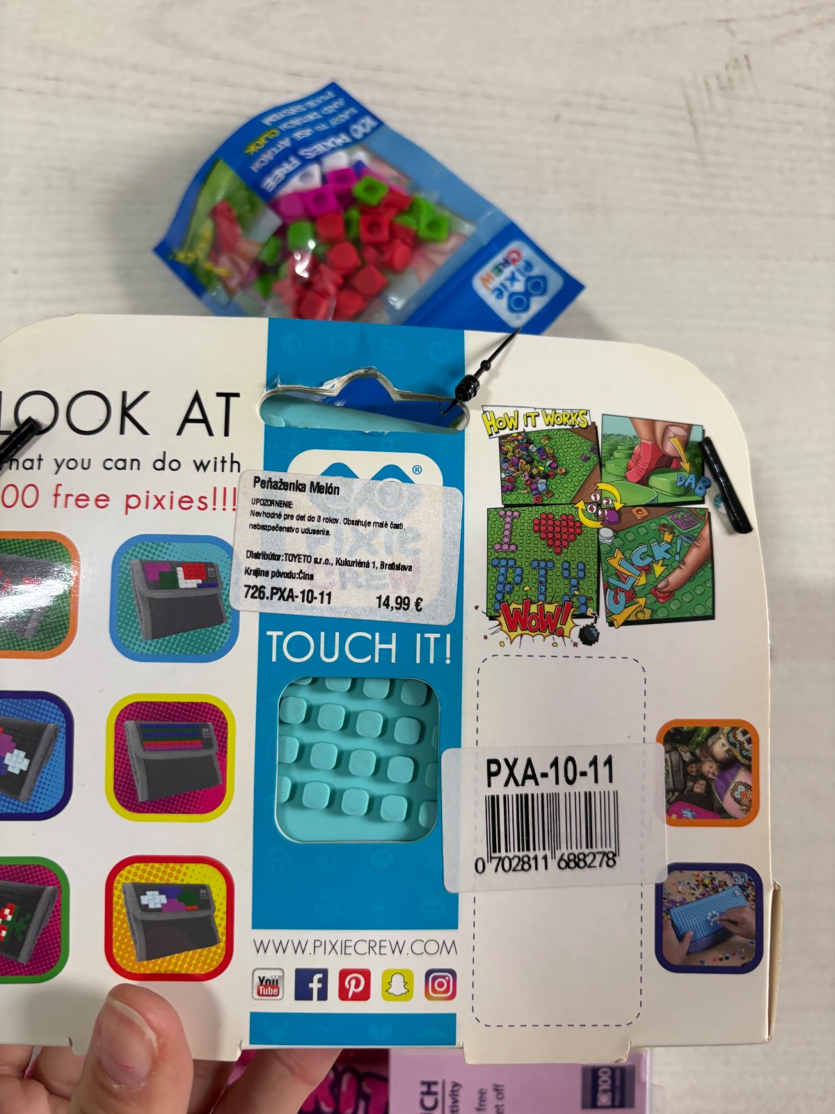 Silikónová plocha vytvára priestor pre 216ks políčok, na ktoré je možné patentovaným spôsobom umiestniť farebné "pixieky". Tých nájdete v balíčku 100ks a v prípade potreby je možné dokúpiť ďalšie. Súčasťou balenia je tiež brožúra nápadov.