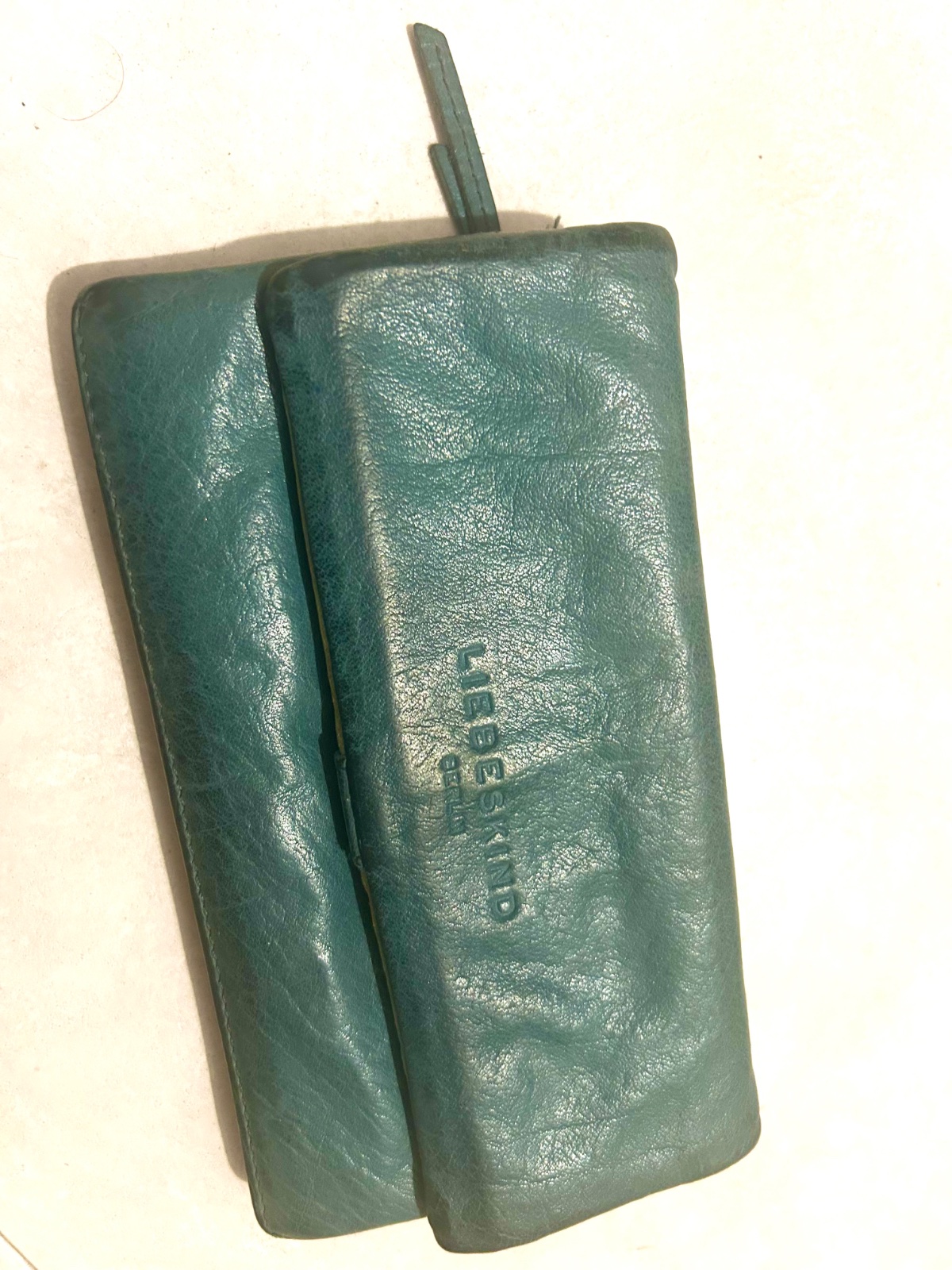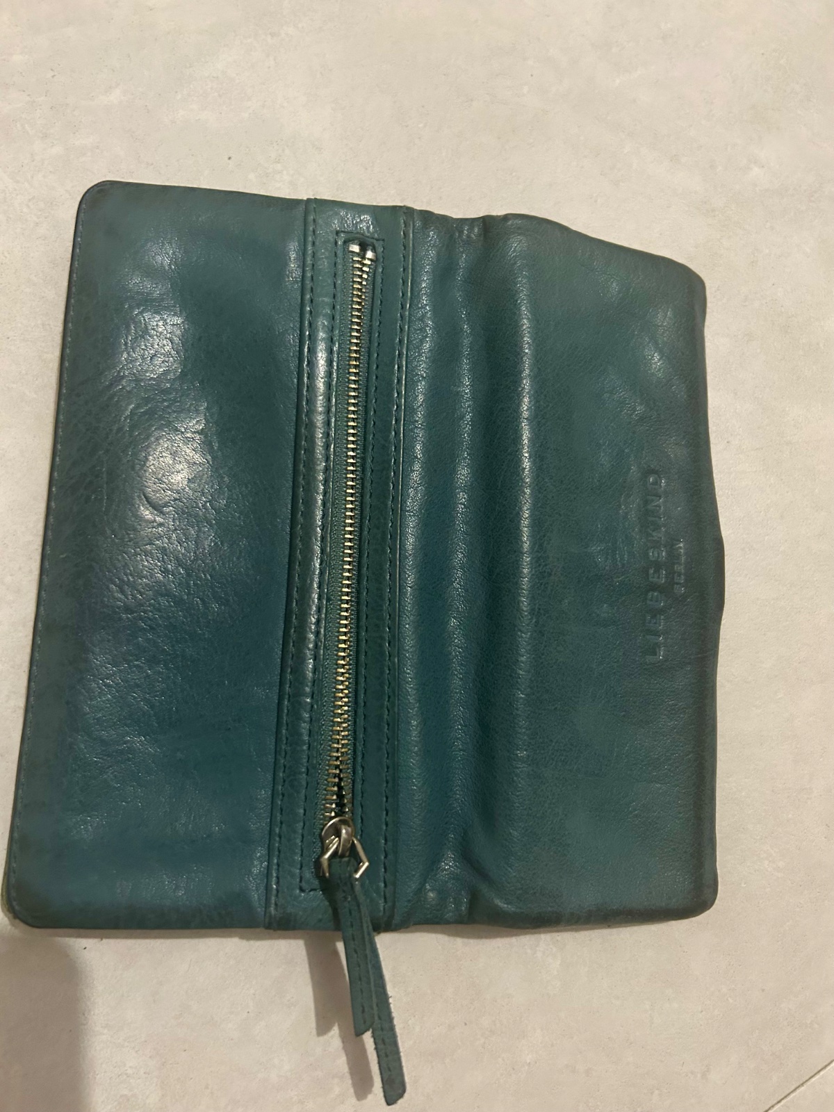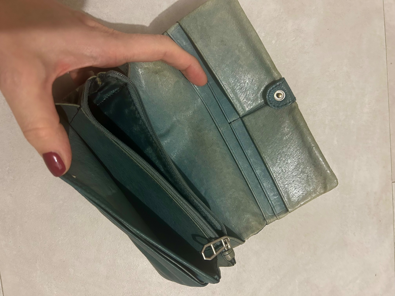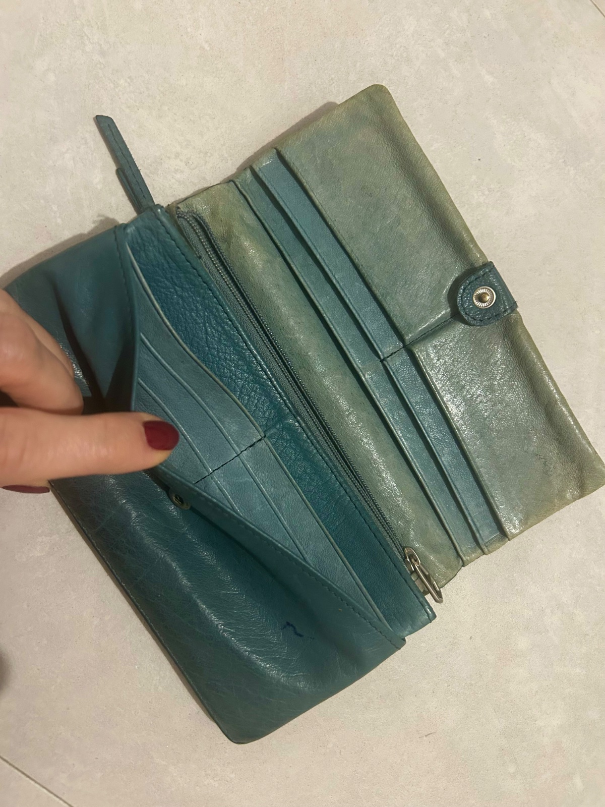 Kvalitná kožená peňaženka - veľká veľmi priestranná - top kvalita pravá koža 👌 farba sivá tyrkys 👍 používaná, no ešte poslúži