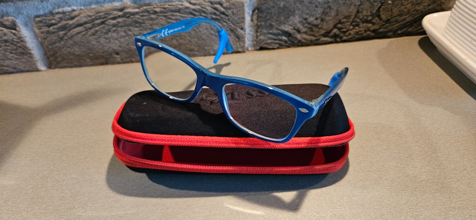 Dioptrické chlapčenské okuliare. Sklíčka sú tuším trojky na diaľku, samozrejme sa dajú vymeniť. Aj so straničkami. Veľkosť cca na 6-8rokov. Cena za komplet 15€ plus pošta.