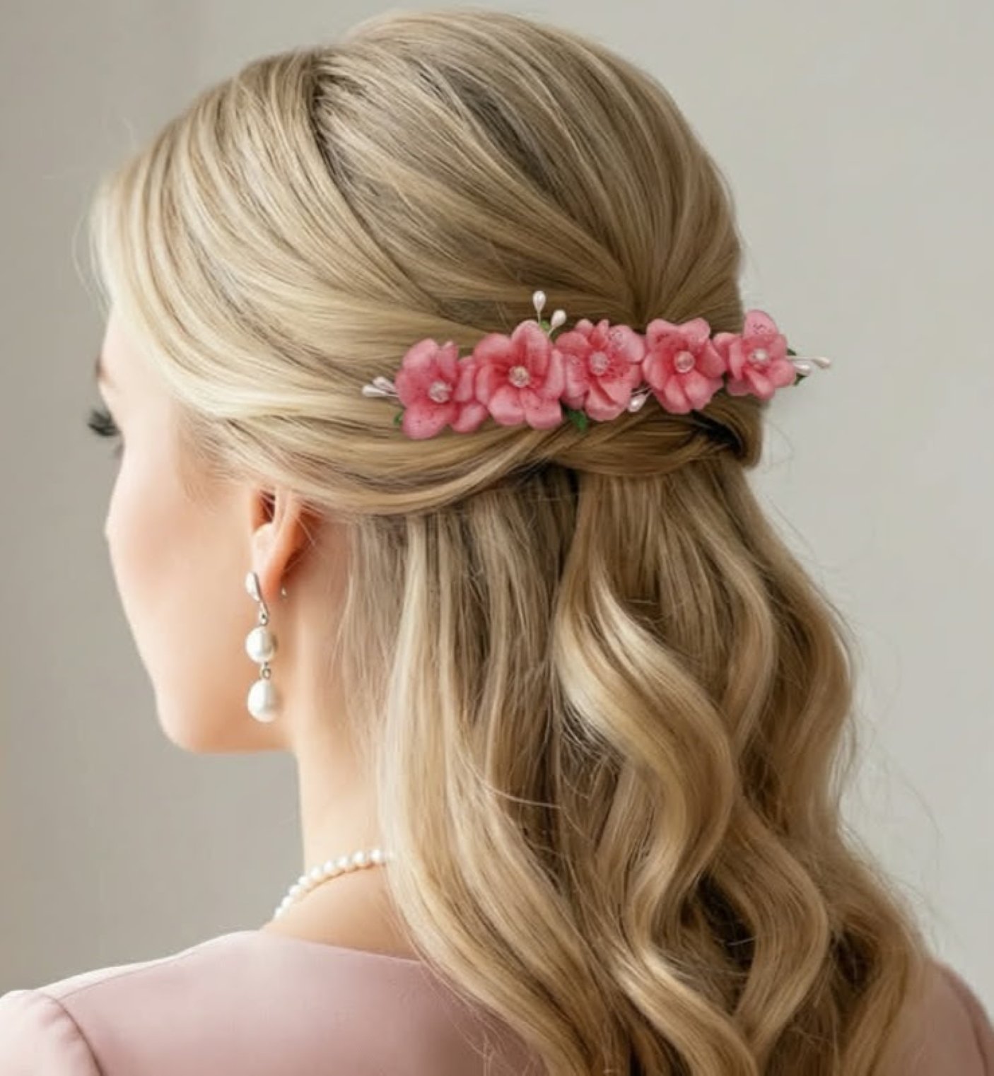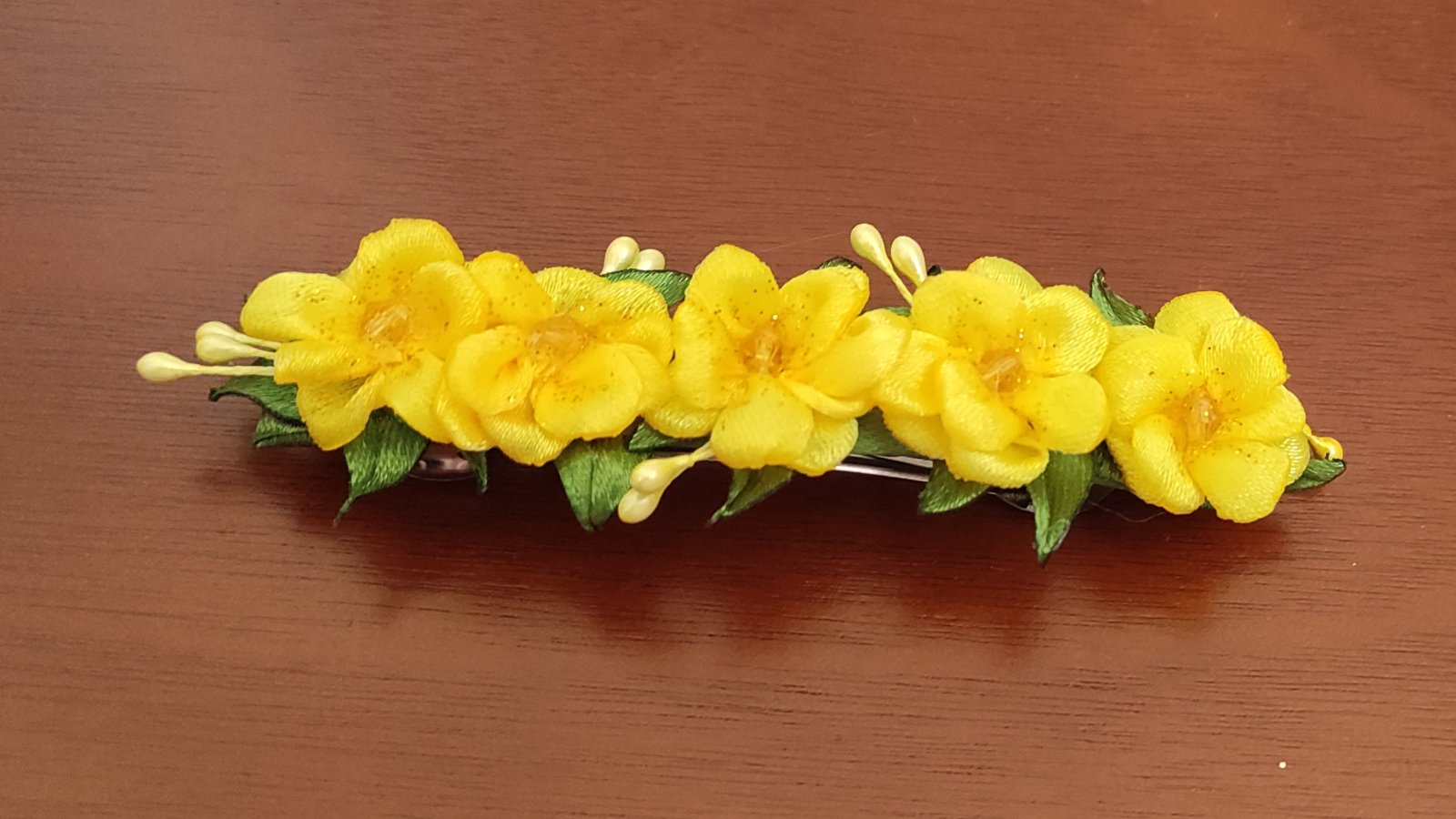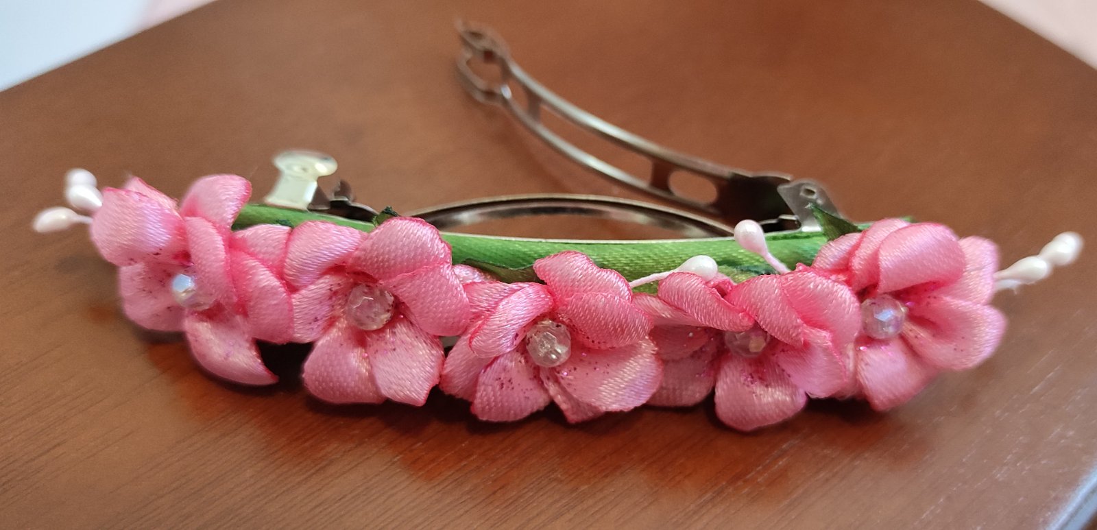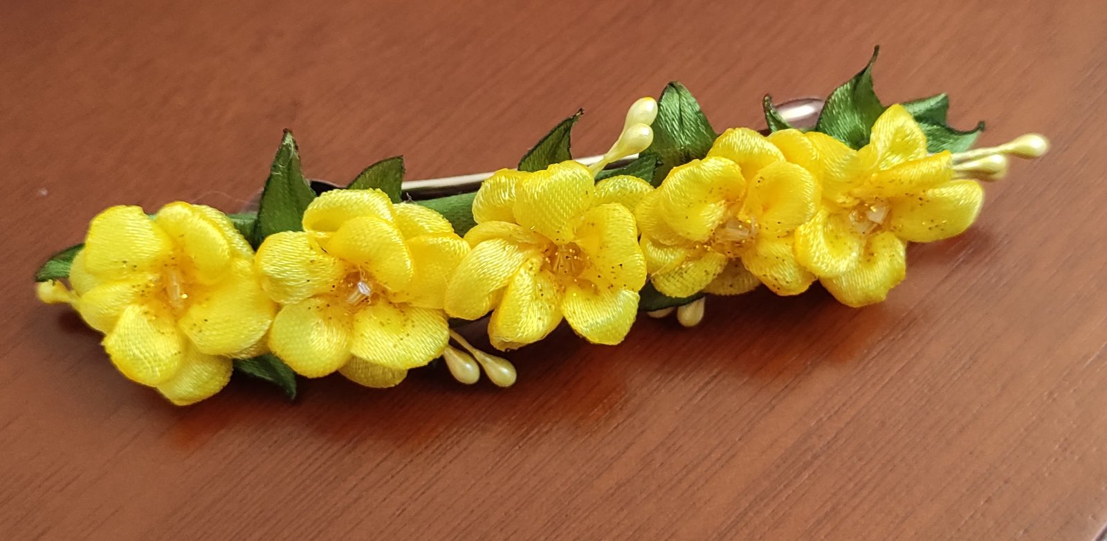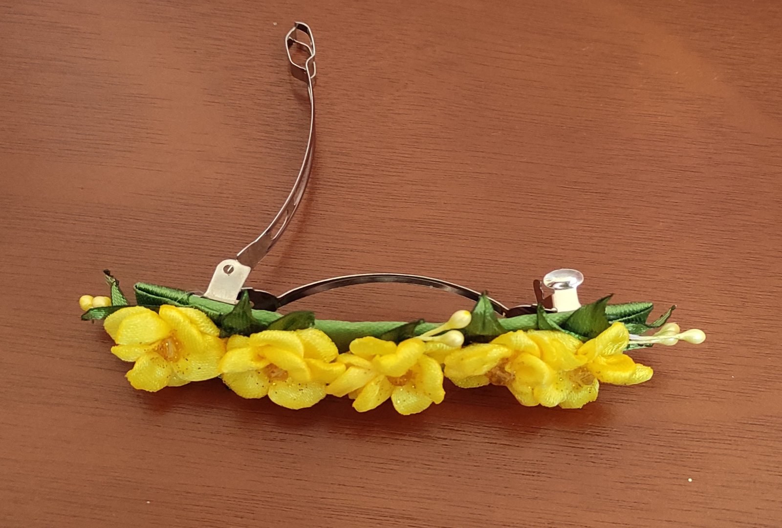 Kvety sú pevne pripevnené na francúzskej spone, ktorá zabezpečí nielen spoľahlivé uchytenie vlasov, ale aj vytvorenie objemnejšieho a štýlového copu.