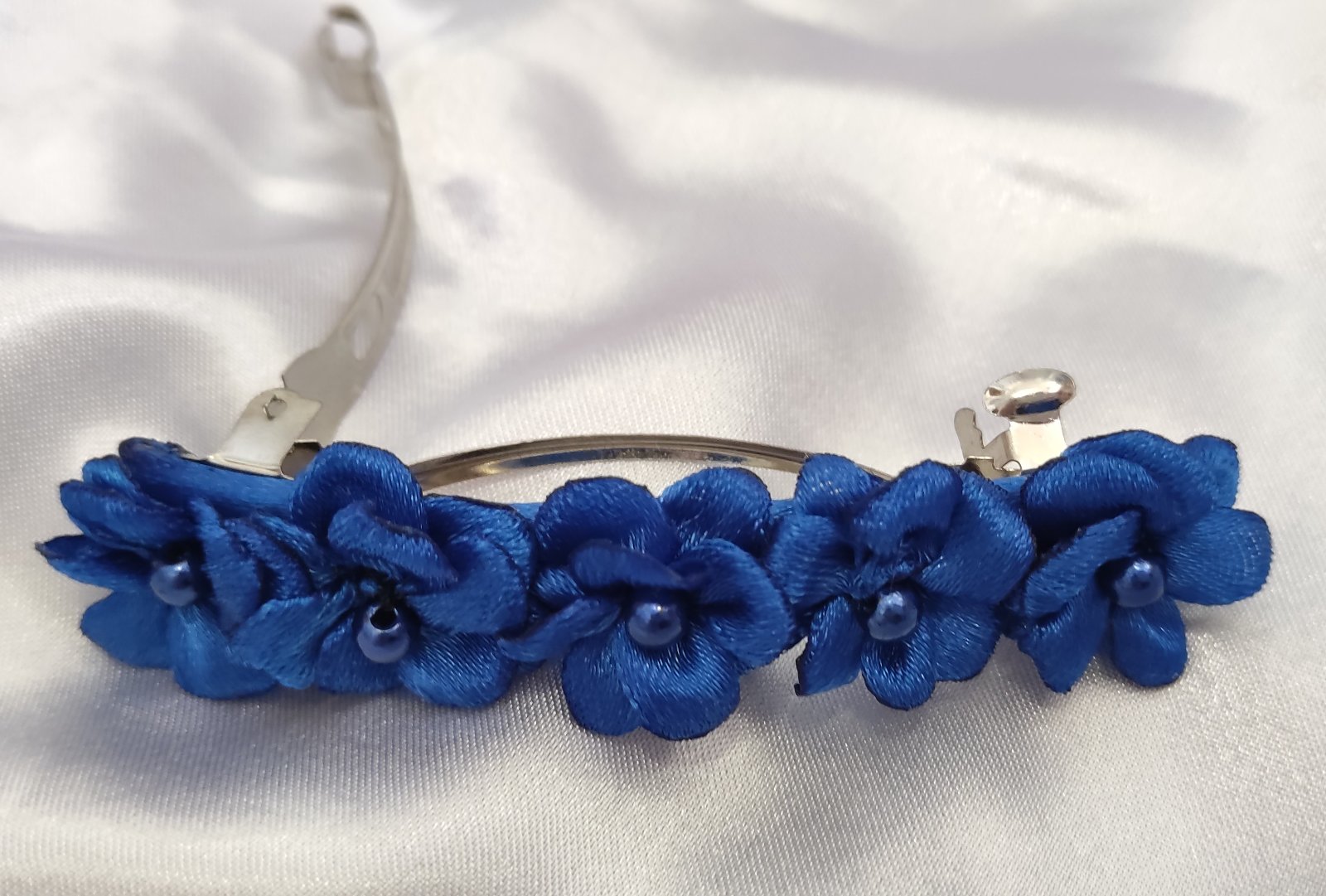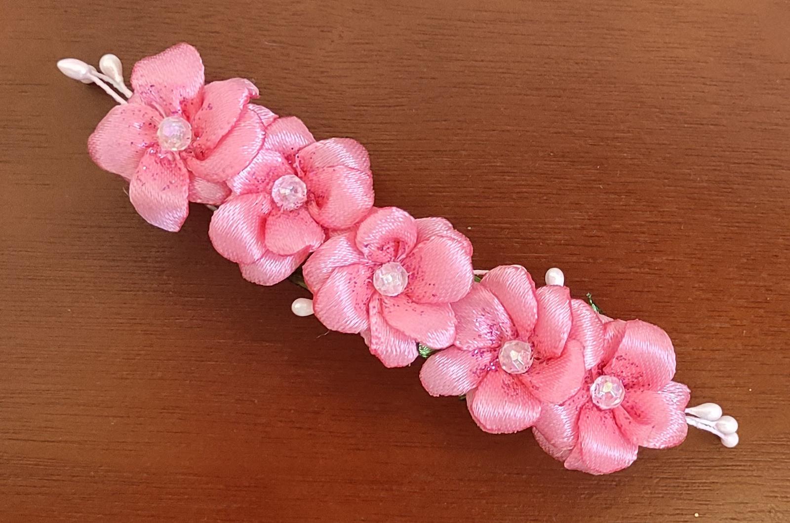 Vneste do svojho účesu nádych romantiky s ozdobou z piatich saténových kvetov, ktoré pripomínajú rozkvitnuté lúčne kvietky.