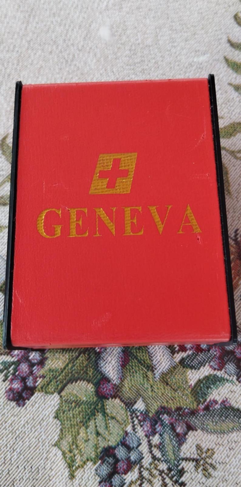 Pánske náramkové hodinky - ručičkové, zn. GENEVA s originál krabičkou. Obvod = 23cm.