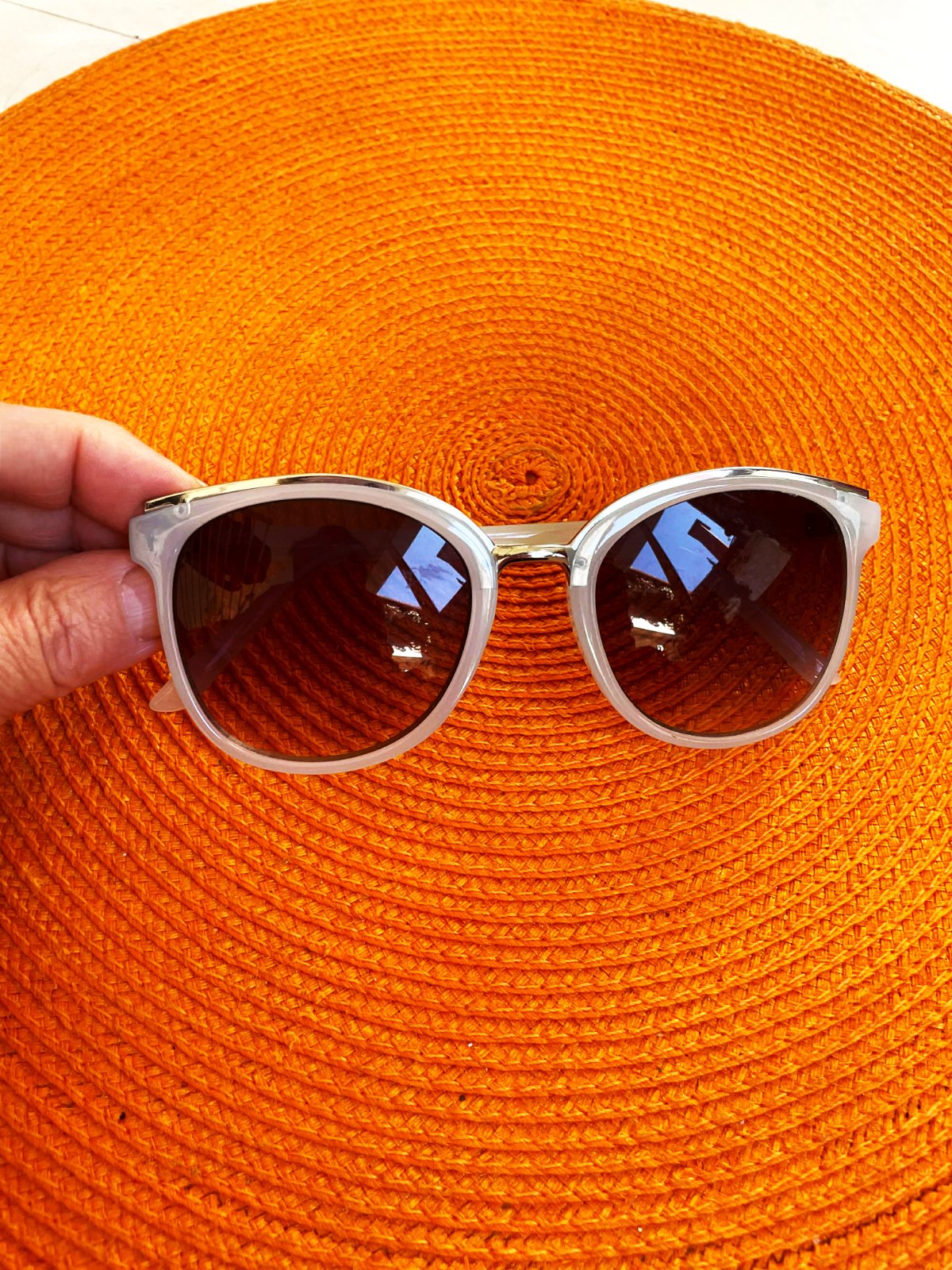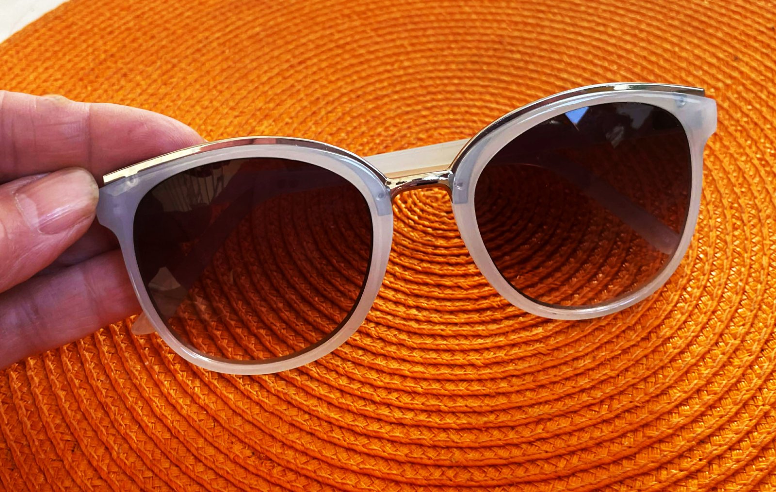 perfektné slnečné okuliare s UVA a UVB filtrom,výborne tieňované sklá,krásny rám - svetlošedo - bledomodrý,krásne sedia na tvári,top stav a kvalita