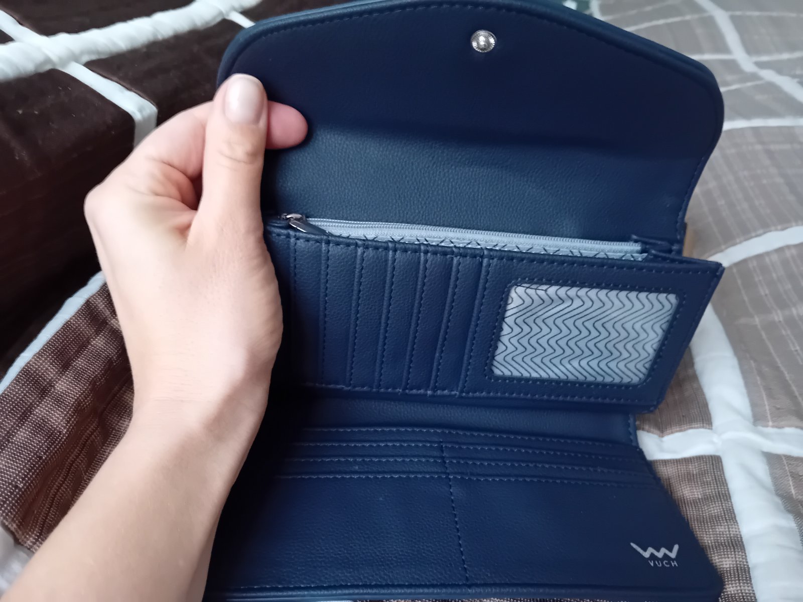 Má všetko, čo je pri správnej peňaženke vyžadované – štrnásť priehradiek na karty, dlhú priehradku na bankovky aj priehradku na mince. A ešte jedna (napríklad na štvorlístok pre šťastie) na zadnej strane peňaženky.