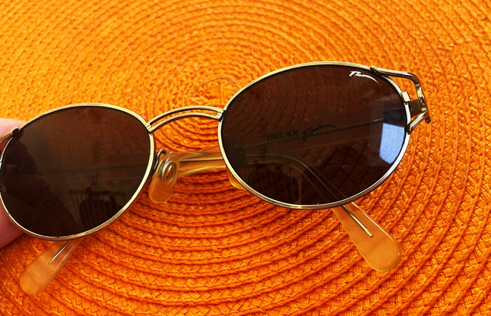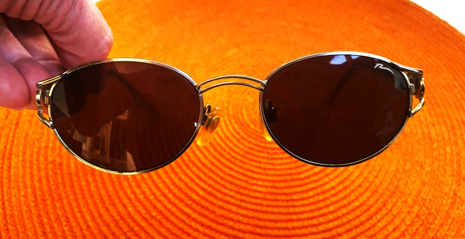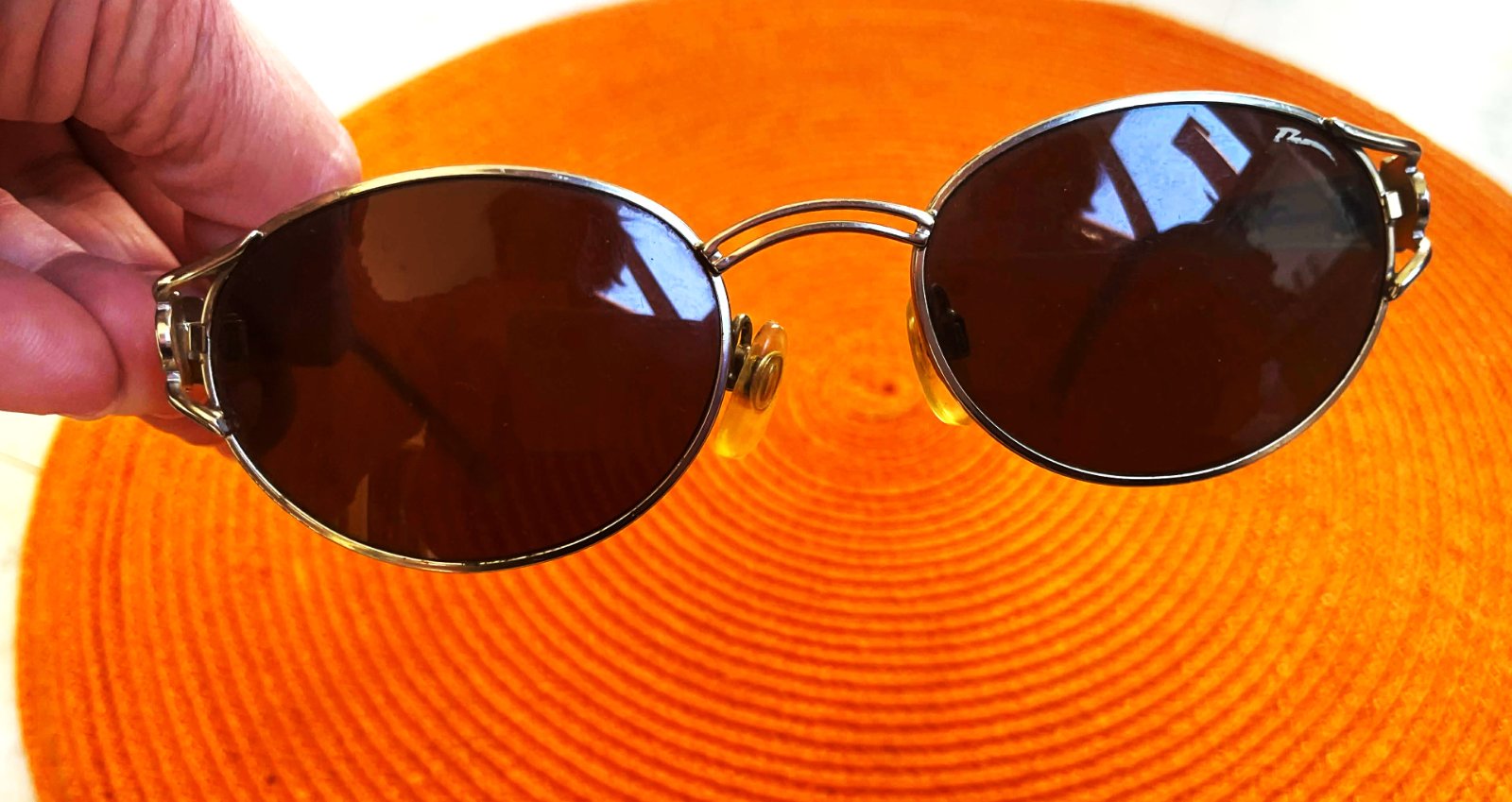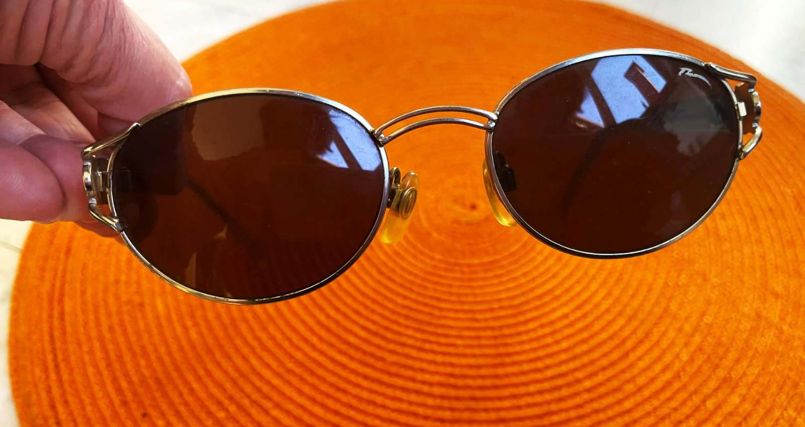 kvalitné moderné štýlové okuliare s kovovým rámom a ozdobným kovovým mostíkom - kupované v Optike,s UVA a UVB filtrom,výborne tieňované sklá,super na opaľovanie,lebo nemajú veľké sklá....