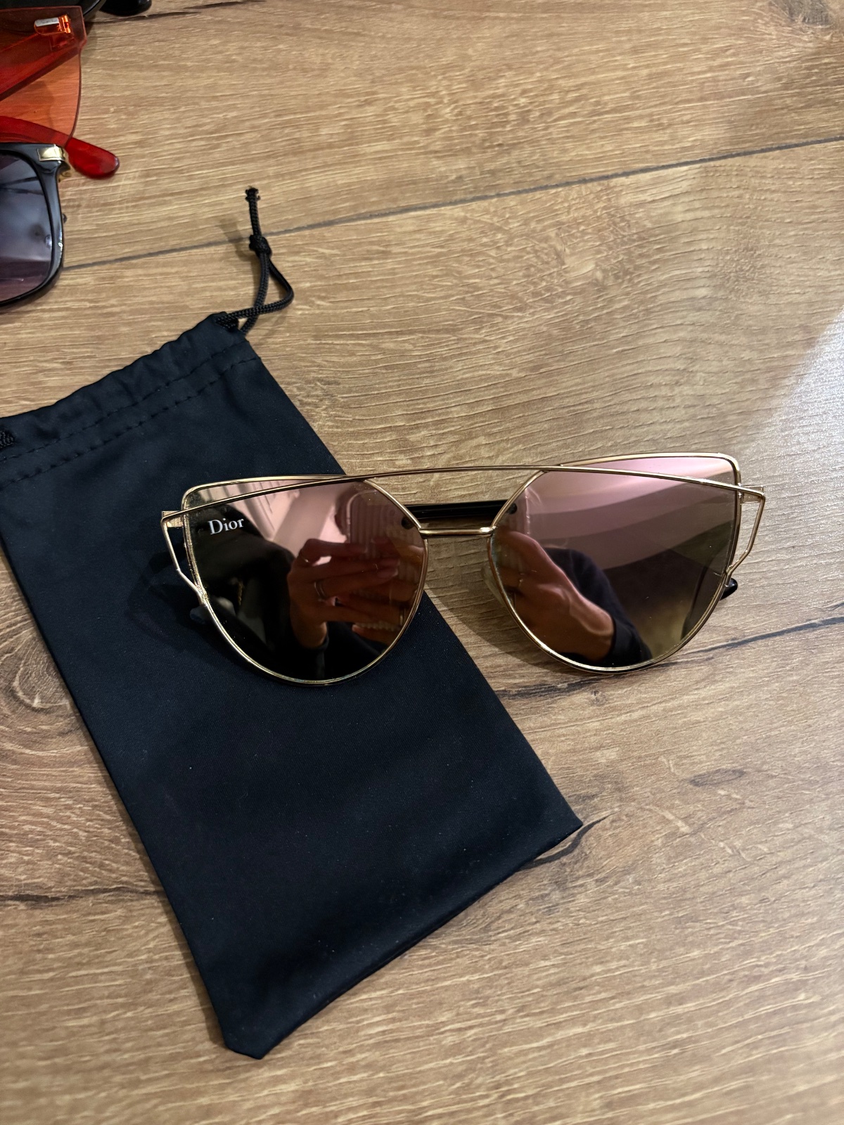 Zlate rámy skla sú ružové s prelomom do zelena