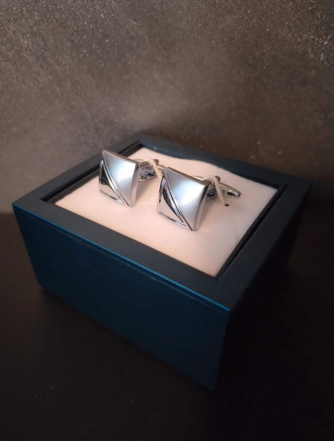 Predám štýlové manžetové gombíky slovenskej značky Adam. Gombíky majú moderný geometrický dizajn s vkusnou kombináciou matného (brúseného) a vysoko lešteného povrchu.