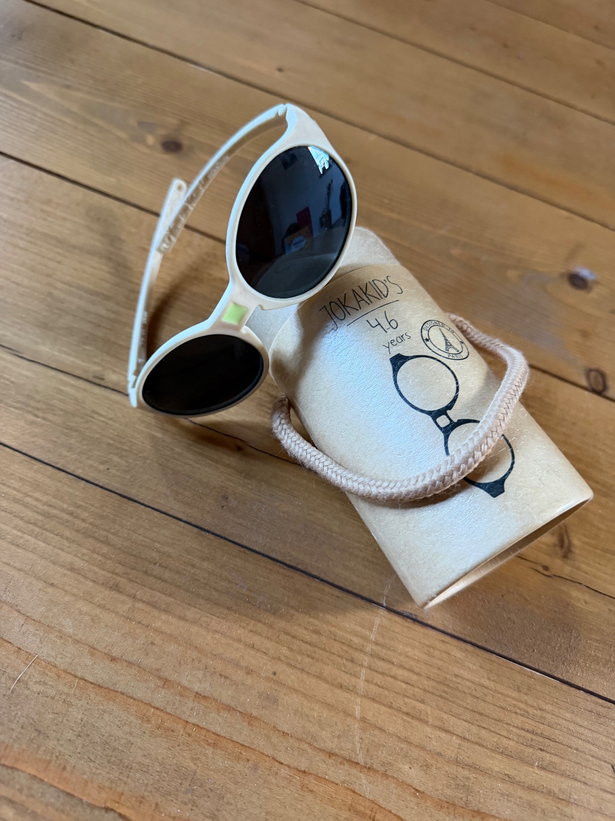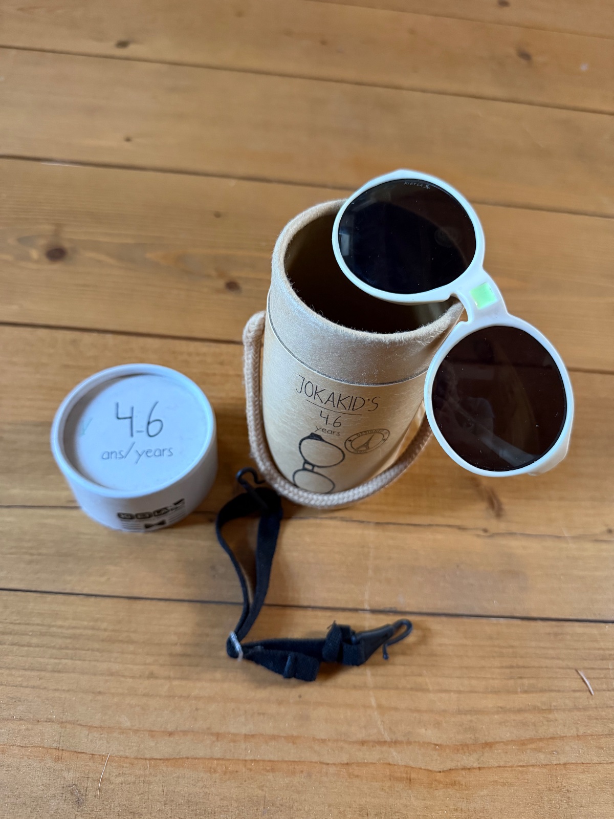 kvalitné , pružné, nezlomiteľné slnečne okuliare pre 4-6 r. s gumičkou ( možnost uchytit na rám okuliarov , aby nepadali ) a puzdrom . dobry stav , znacka jokakids kietla
