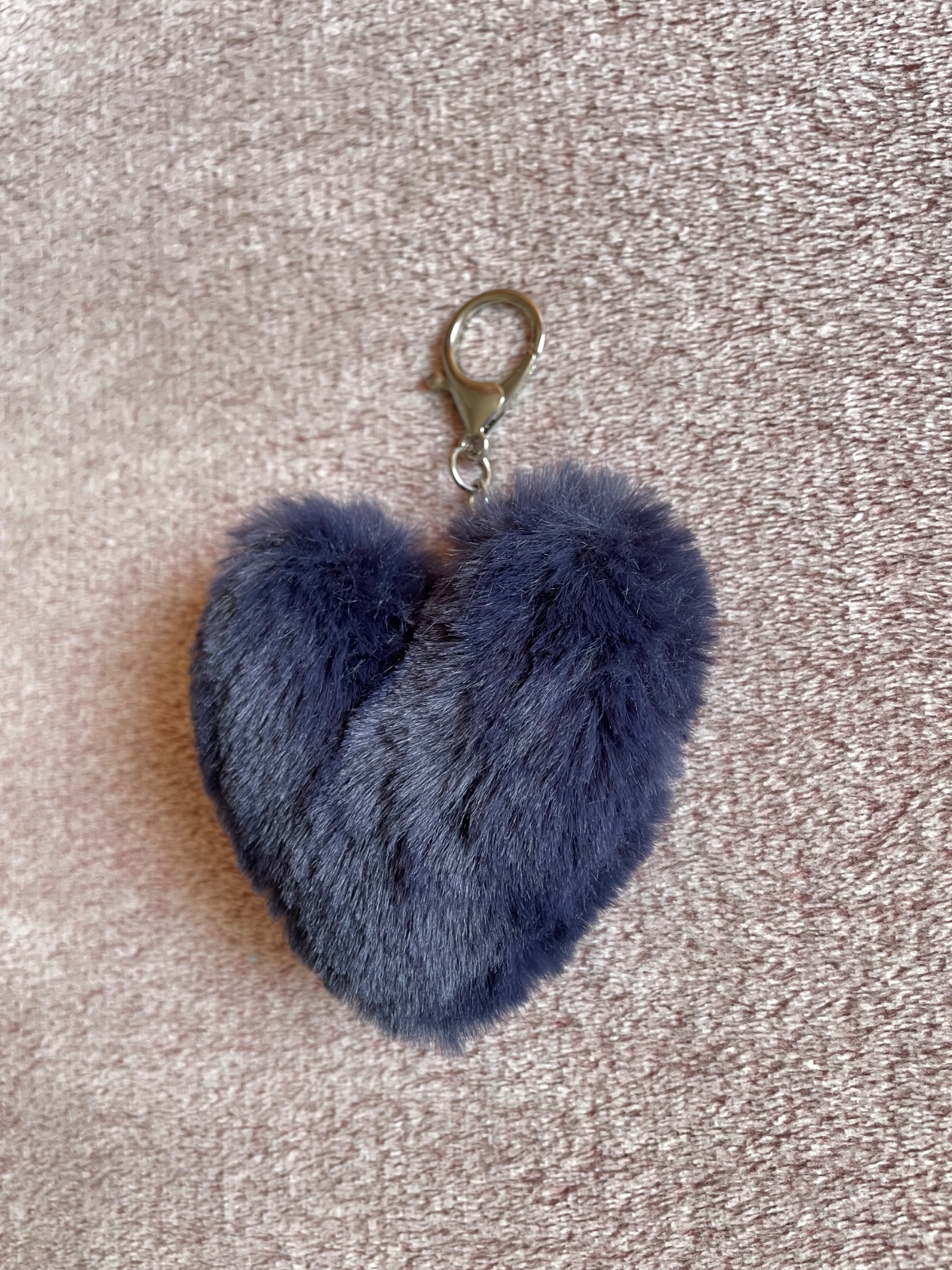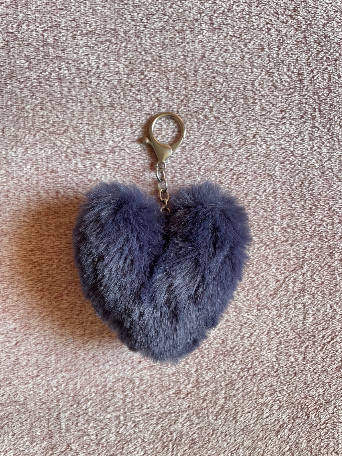 Krásny kožušinkový chlpatý prívesok na kabelku v tvare srdiečka.