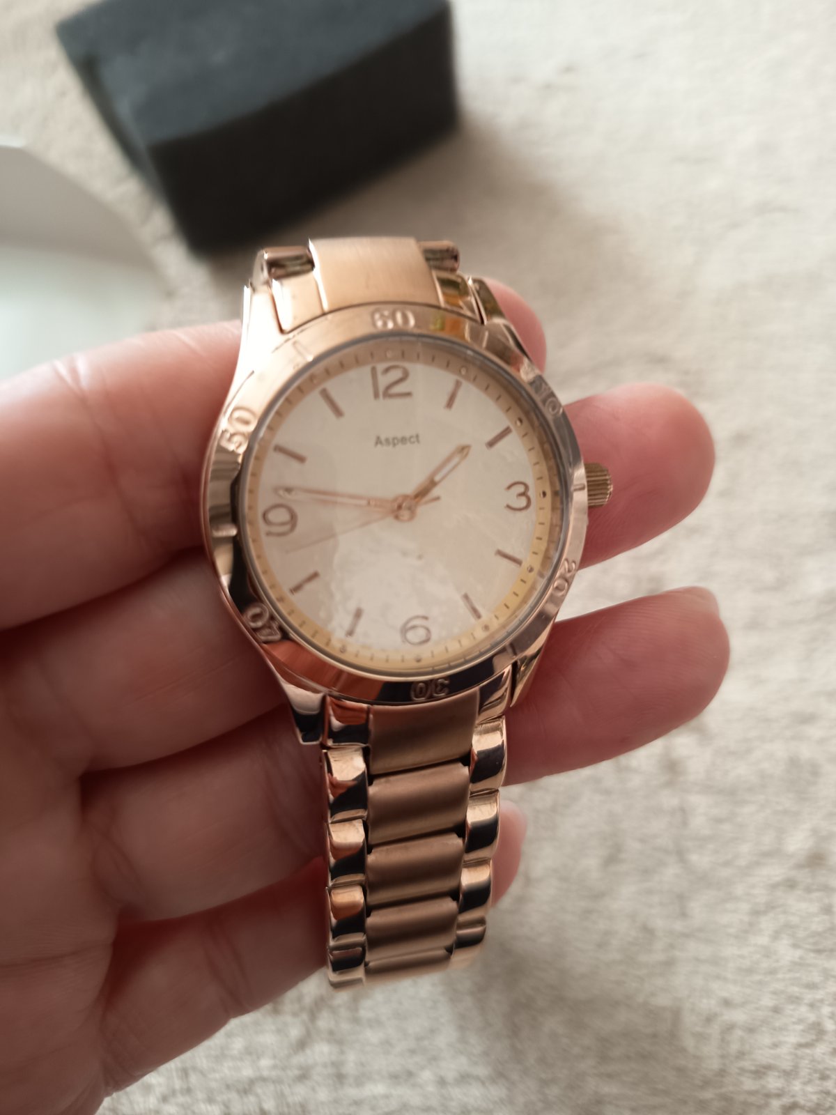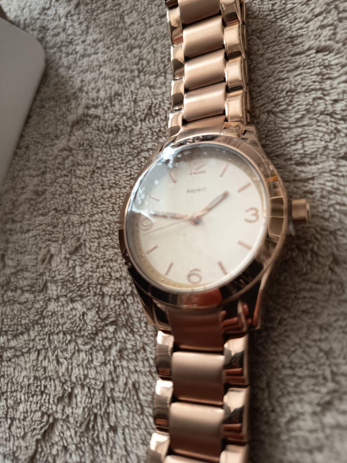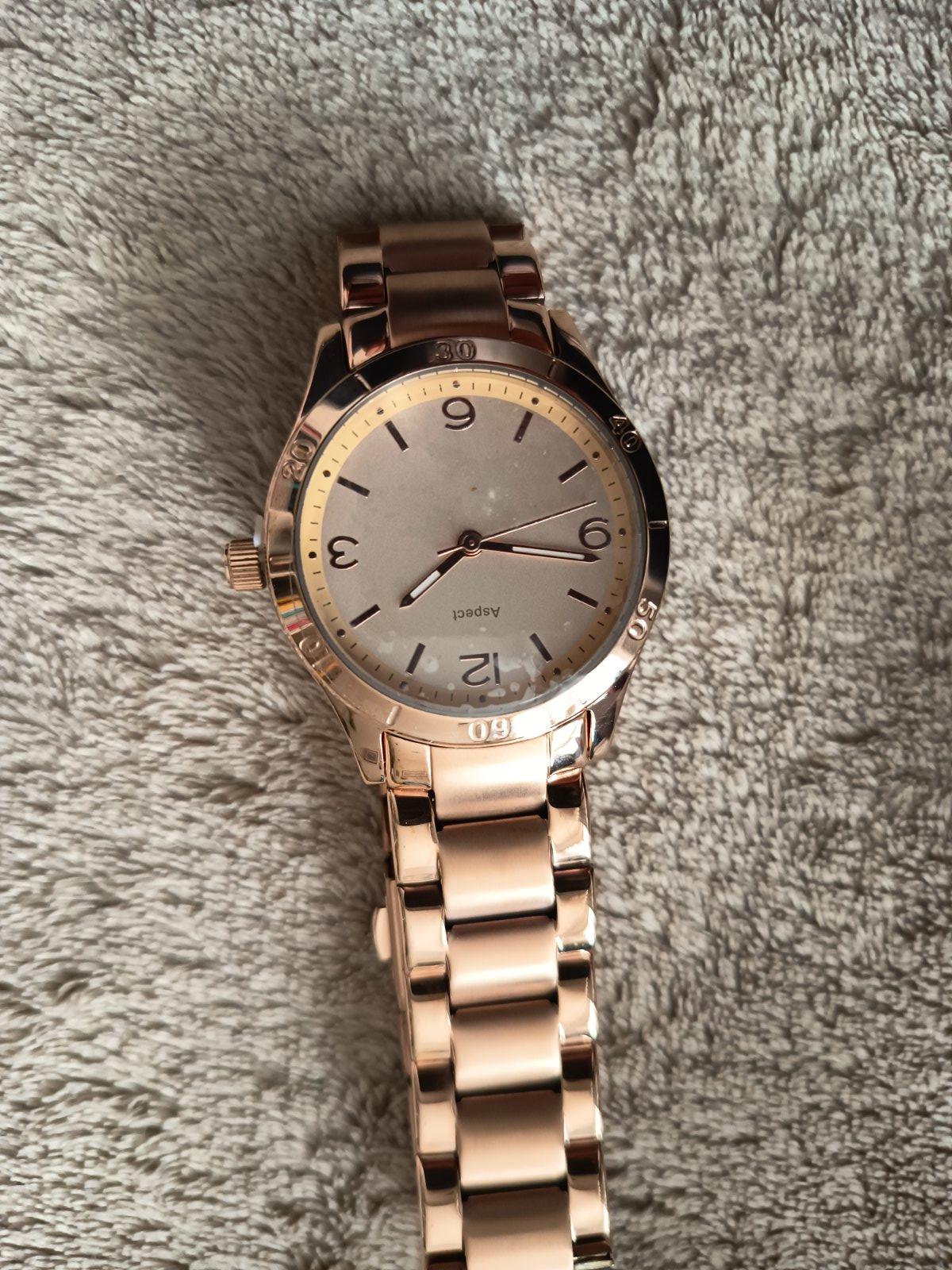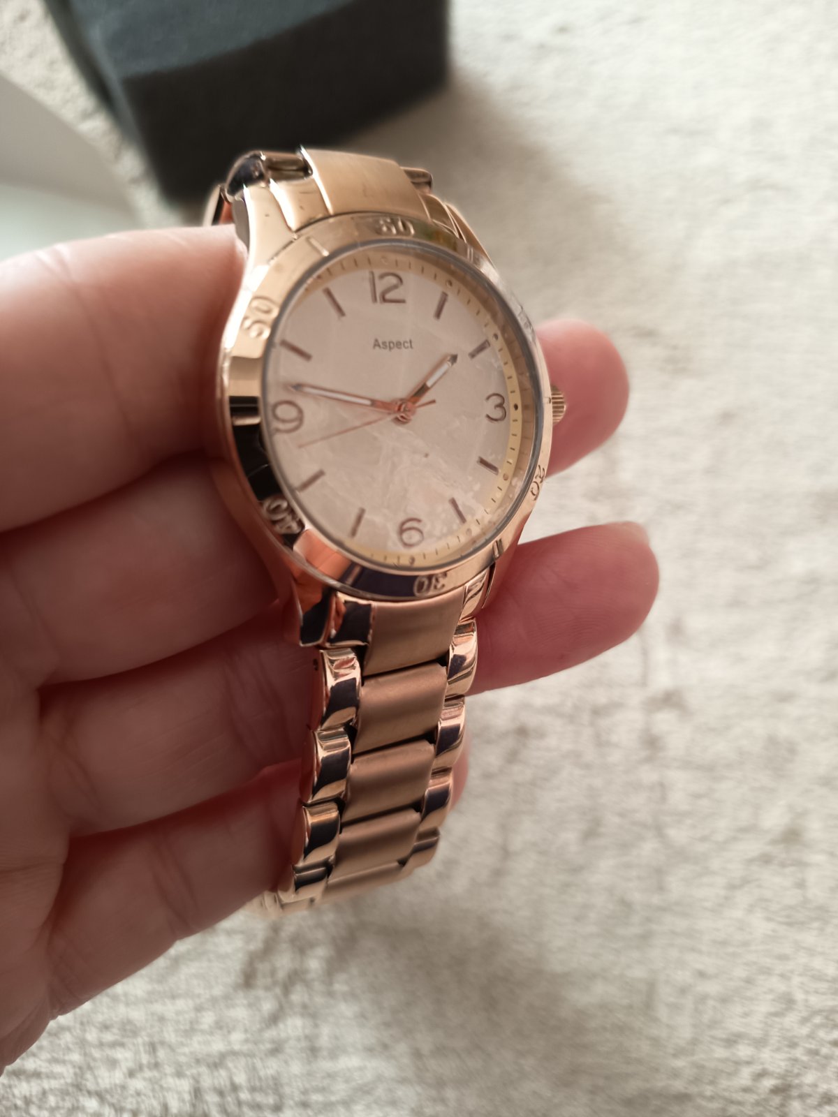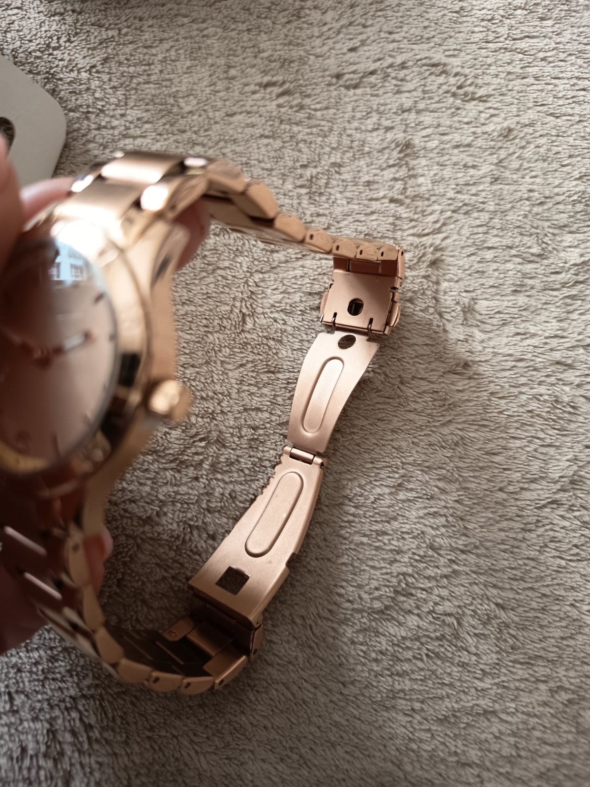 Nové náramkové hodinky Tchibo z ušľachtilej ocele vo farbe ružového zlata matne-lesklého vzhladu so svietielkujucimi ručičkami.