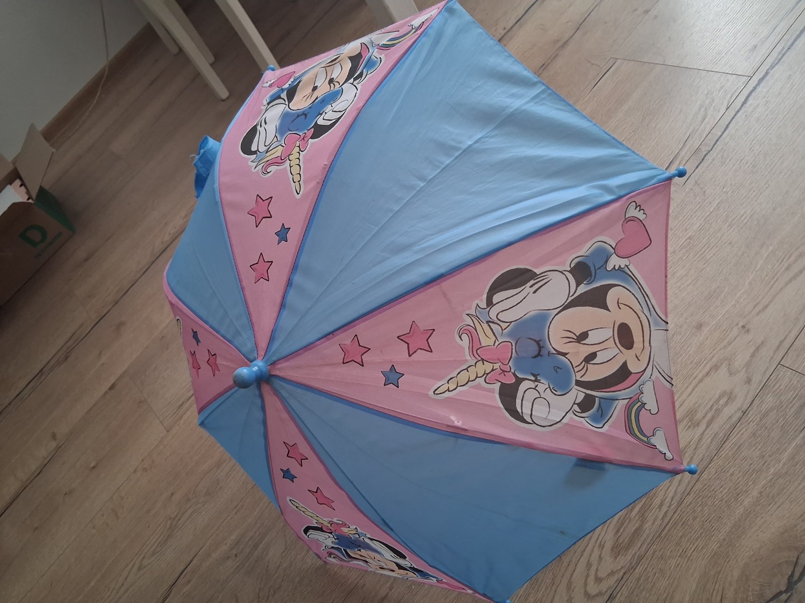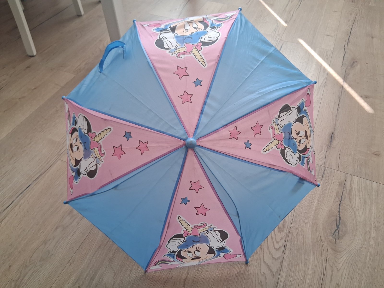 Predám priesvitný detský dáždnik Minie, celková dĺžka 85cm, dĺžka dáždnika 54cm. Žiadne poškodenia.