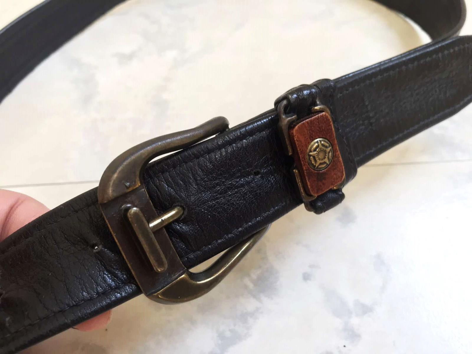 min.nosený celokožený opasok s peknou upínacou sponou,dlžka celkom bez spony = 114 cm, dlžka po prvú dierku = 86 cm, po poslednú dierku = 102 cm - dierky sa dajú dorobiť, šírka opasku = 2,9 - 3 cm