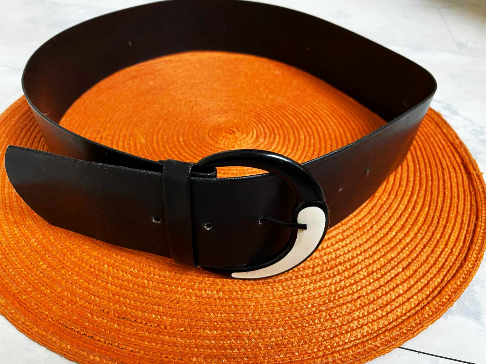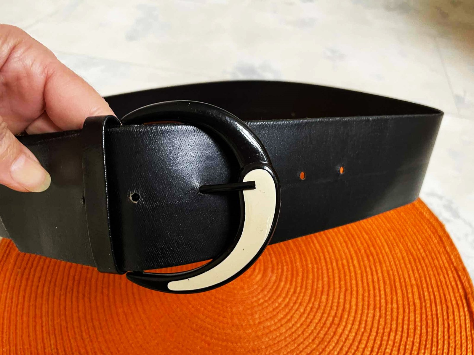 zaujímavý nosený opasok s krásnou nevšednou sponou jing - jang,nie je kožený,ale verne pripomína kožu,je matný, šírka opasku = 5,5 cm, dlžka = vyfotená.Obrázok s kabátom je iba pre ilustráciu,Opasok je vhodný k šatám,nohaviciam,sukni ale super aj ku kabátom