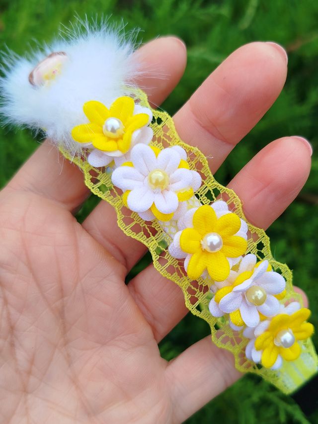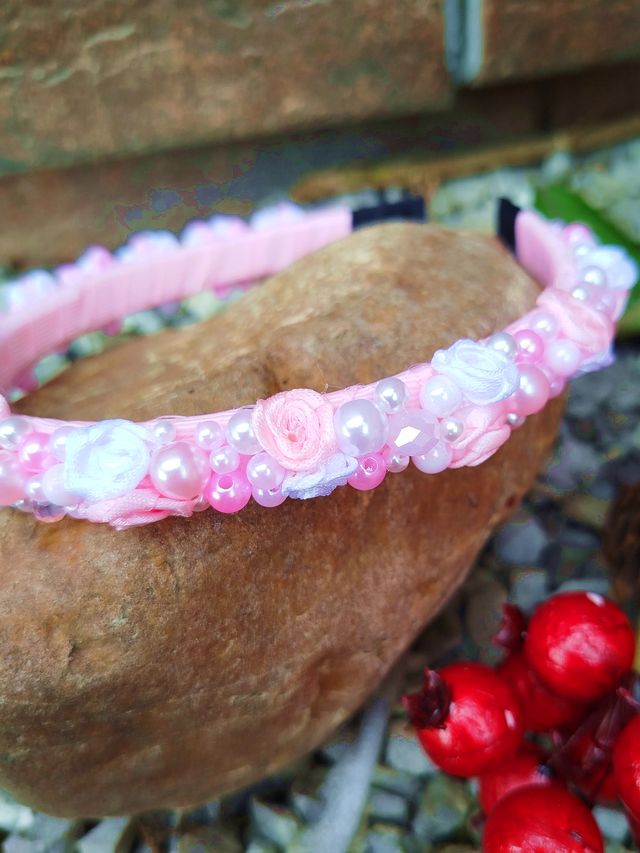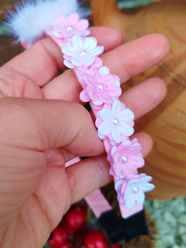 Je vyrobená z kvalitných textilných kvetov starostlivo vyberaných na jemnú saténovú čelenku ktorá netlačí. Krásne sedí na hlávke - v prípade záujmu odfotím na mojej dcérke 😊
