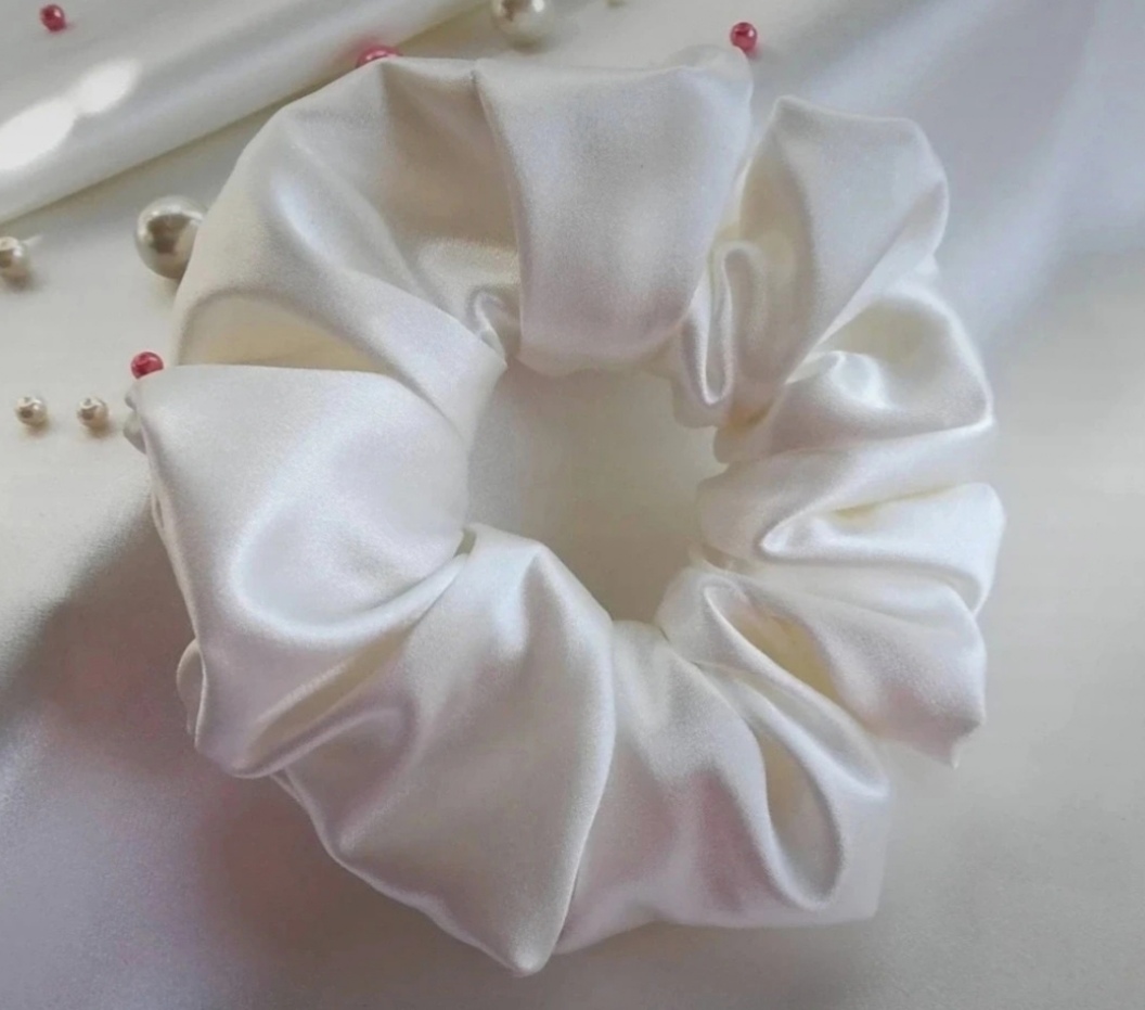 Saténová scrunchie je bohato riasená, krásne drží Vaše vlasy a môžete ju obmotať okolo copu 2-3 krát, záleží od hustoty Vašich vlasov. Gumička neťahá a nenamotáva vlasy. V ponuke mám veľký výber farieb, od klasických, neutrálnych, výrazných až po rôzne vzorované.