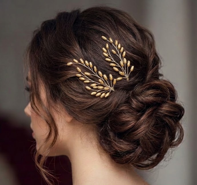 Korálky sú precízne upevnené na ohybnom drôtiku v rovnakej zlatej farbe, ktorý sa dá flexibilne zapracovať do účesu.
