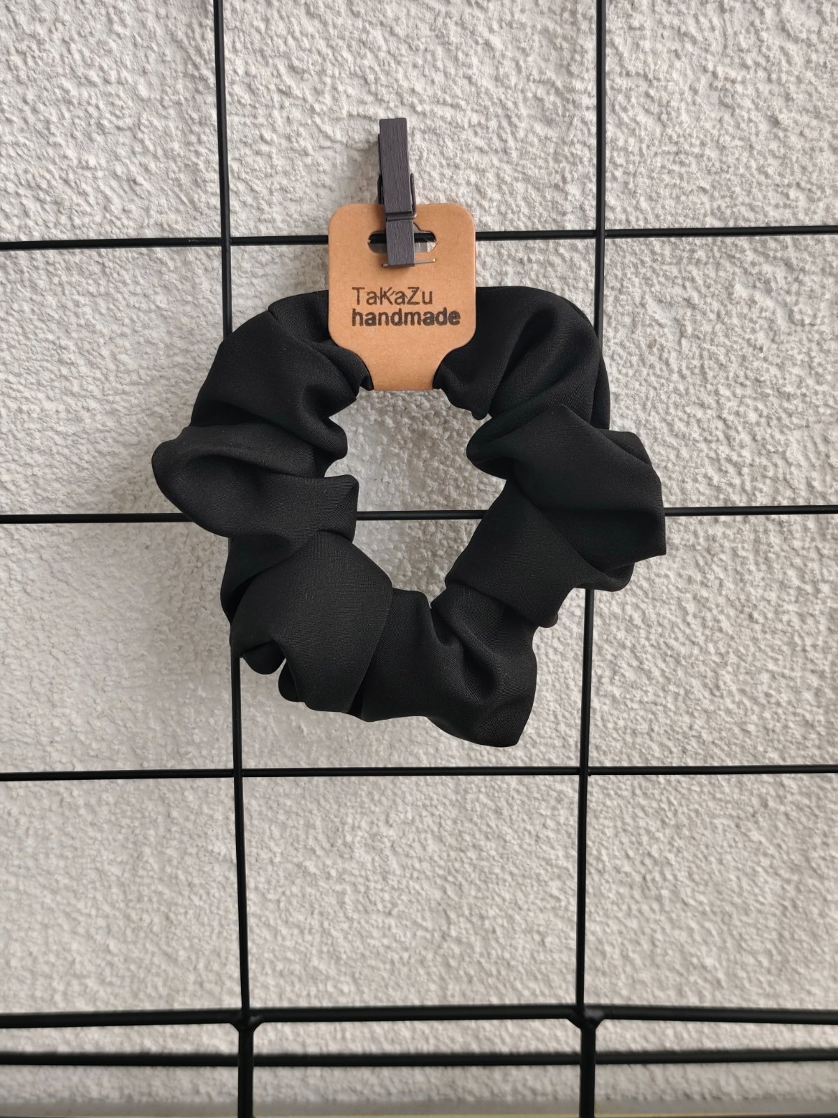 Scrunchie sa dá pohodlne omotať 3× okolo copu či drdolu. Vnútorná gumička je dostatočne pevná, nerozťahuje sa a dobre drží tvar aj pri pravidelnom nosení.