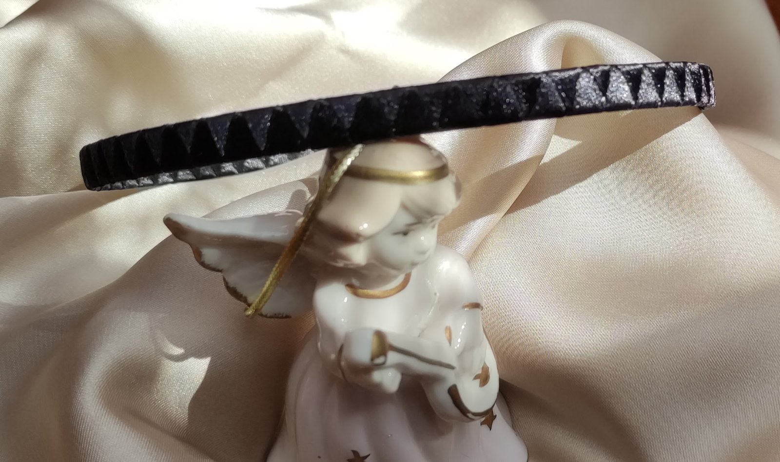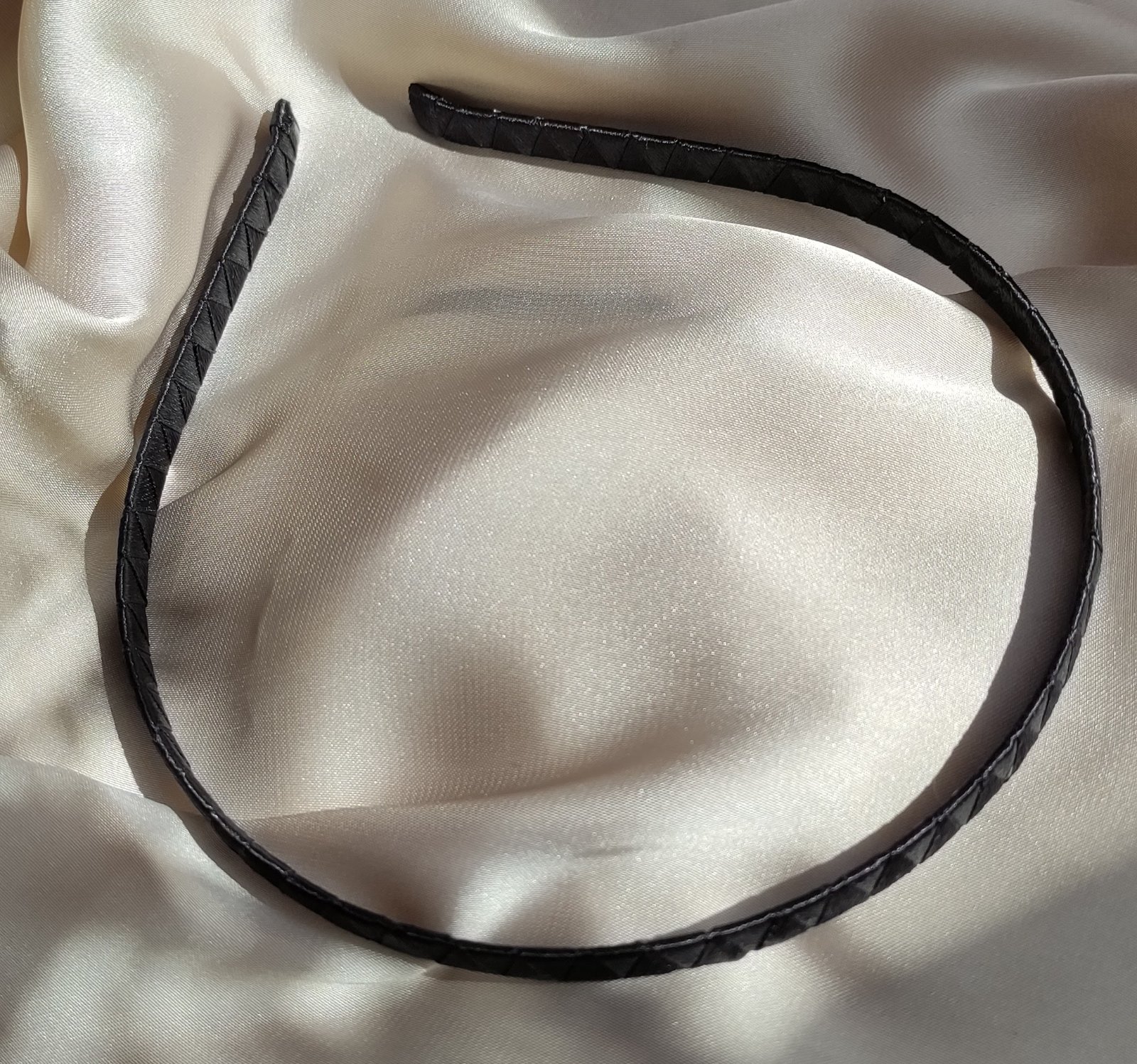 Štvrtou ozdobou zostane pružná kovová čelenka, ktorá je starostlivo ovinutá saténovou stuhou do pravidelného vzoru.