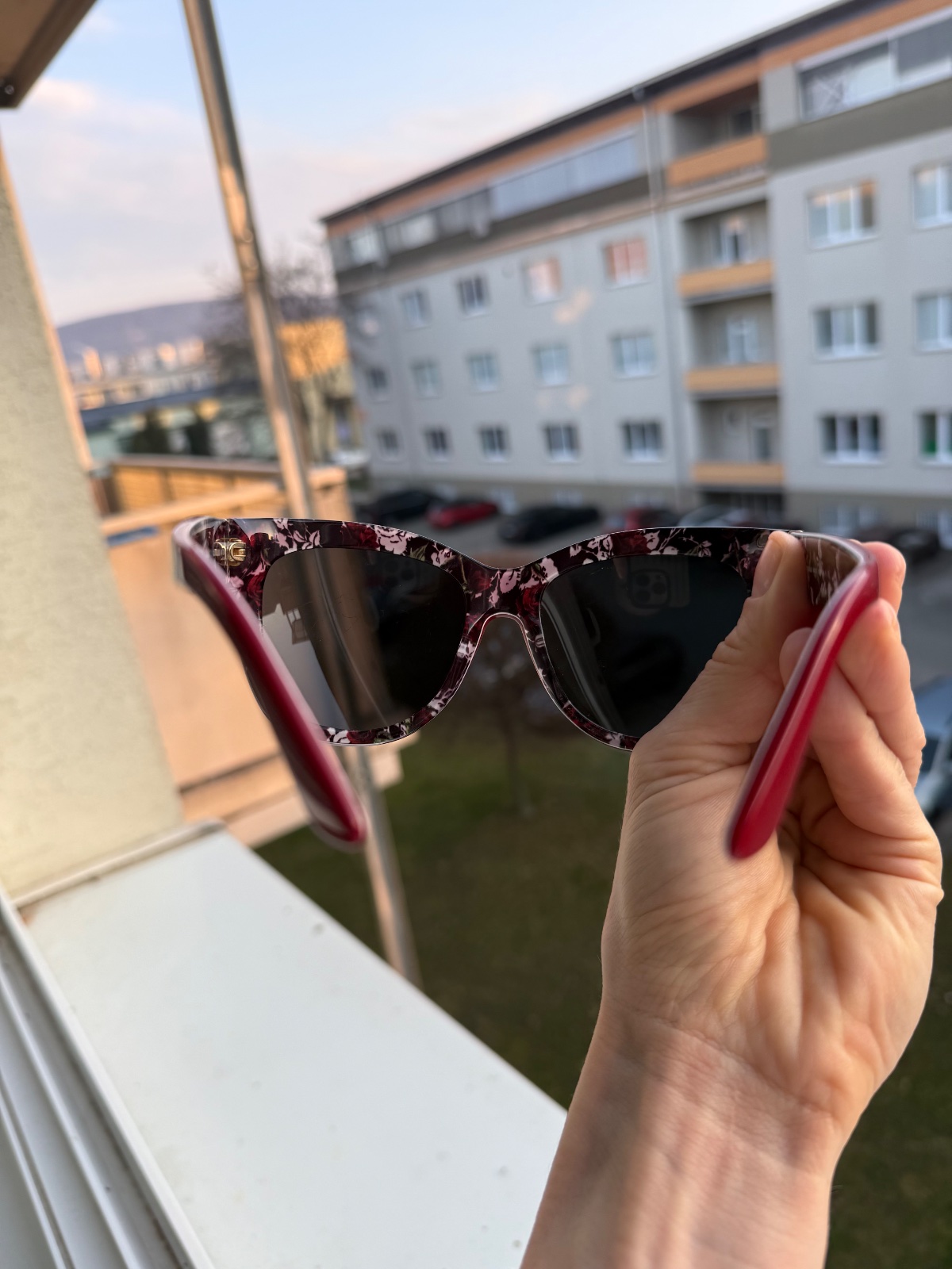 Mozu niest znamky nosenia,maju jemne skrabance,snazila som sa to zachytit,ale je to vidiet iba v urcitom uhle.Kupovane na mytheresa.Velmi pekne sedia na tvari.