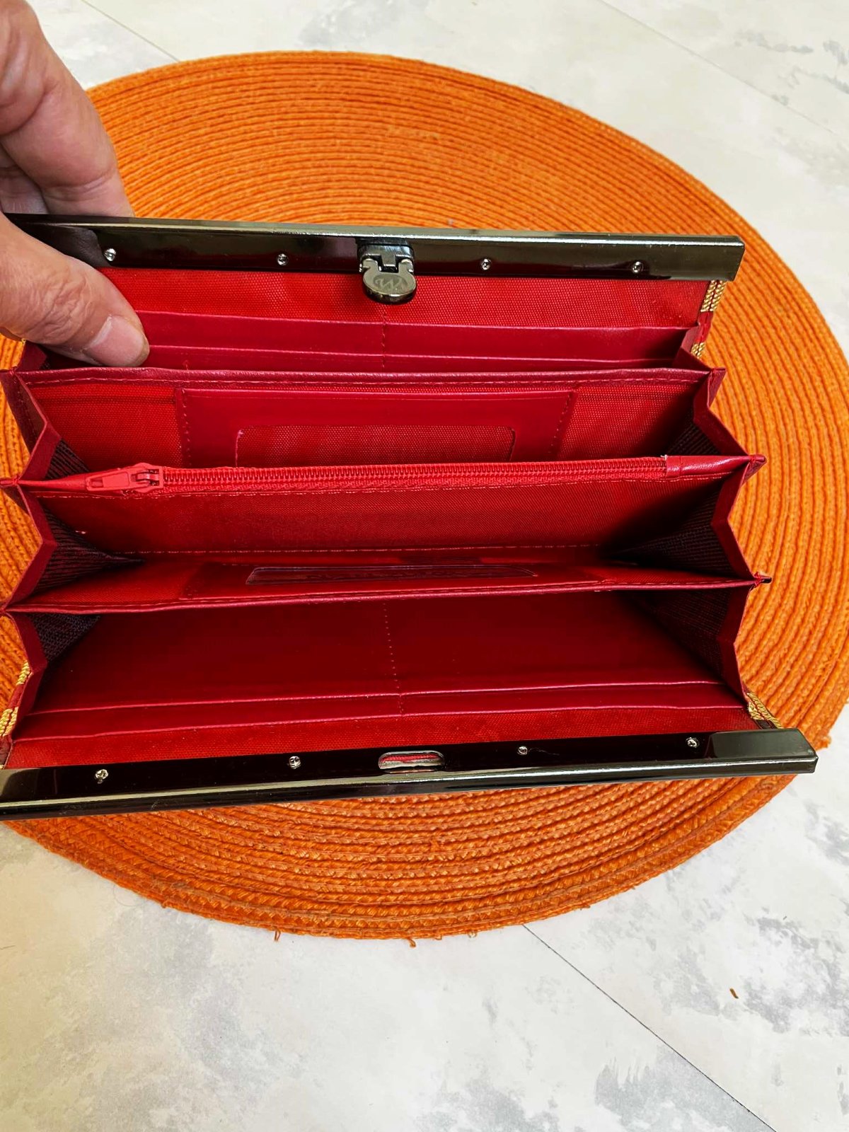 zaujímavá peňaženka,jemne perleťová úprava,syntetika,výborné zapínanie,zipsík na drobné,veľa priehradok,19 x 10 cm