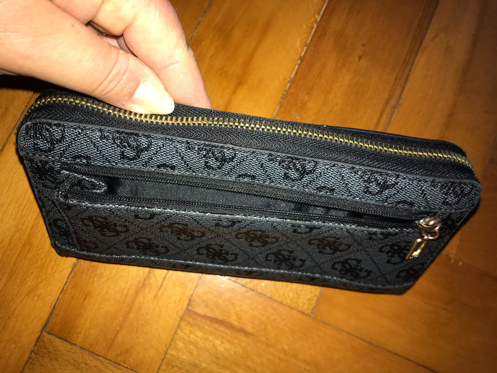 výrazný kovový nápis GUESS vpredu – luxusný detail, ktorý zaujme, – mierne ošúchaný, no stále pôsobí štýlovo