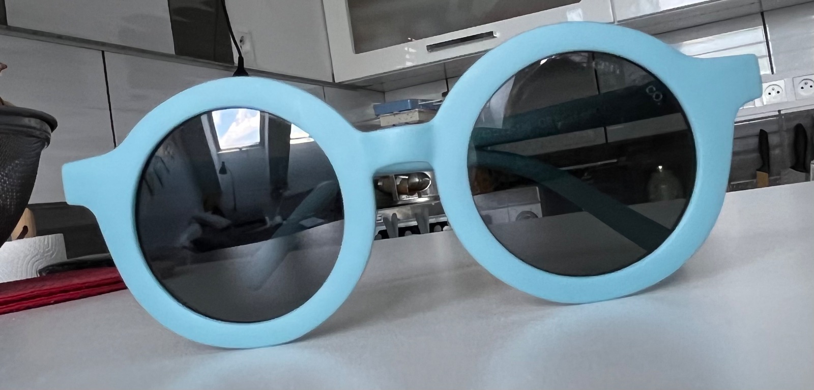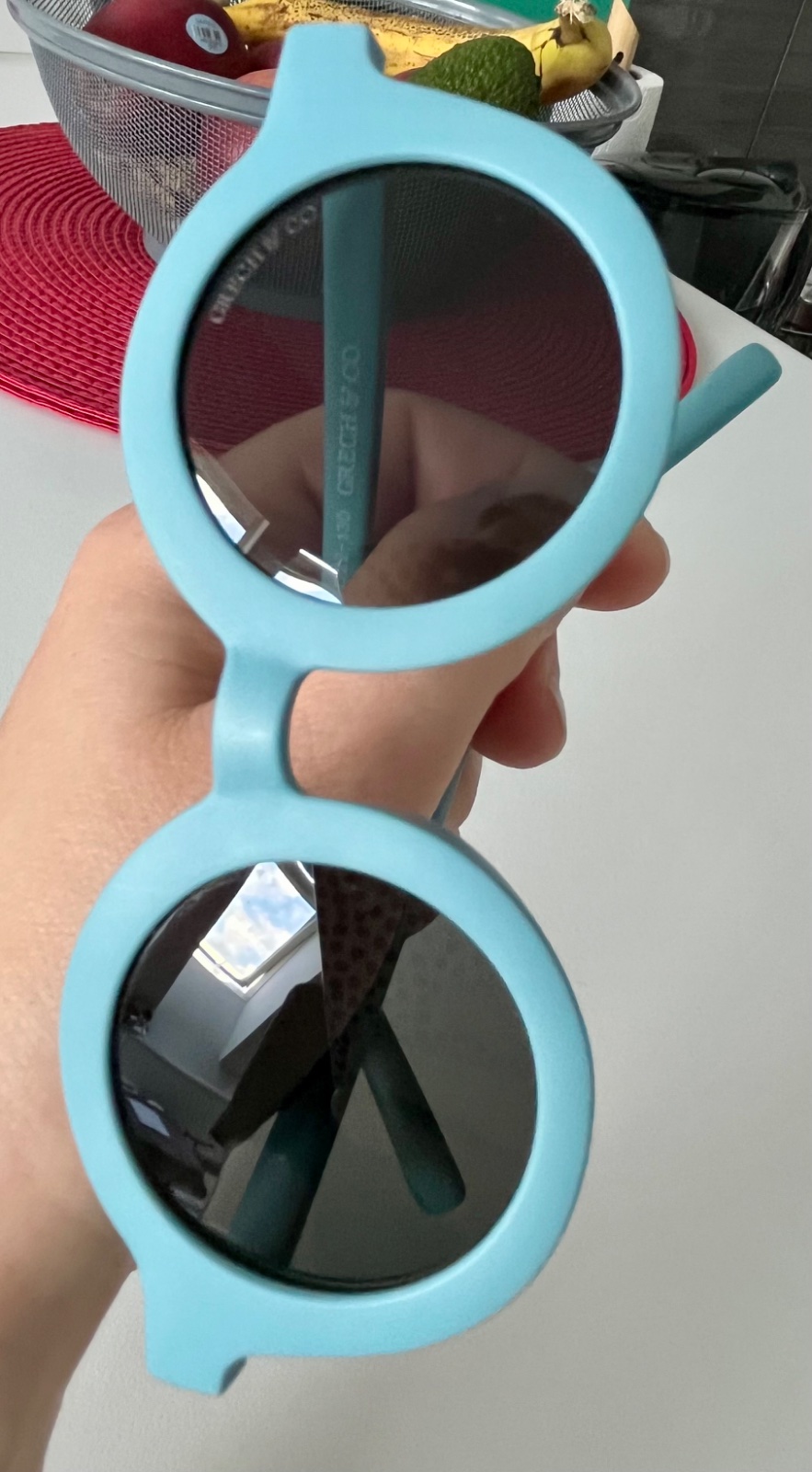 Darček, ktorý sme nevynosili, mali sme už svoje. Nezlomiteľné rámy- aspoň tak je uvedené na krabičke, ale pri chlapcoch nikdy neviete. 100% UVA/UVB. S pomocnou gumičkou za krk.