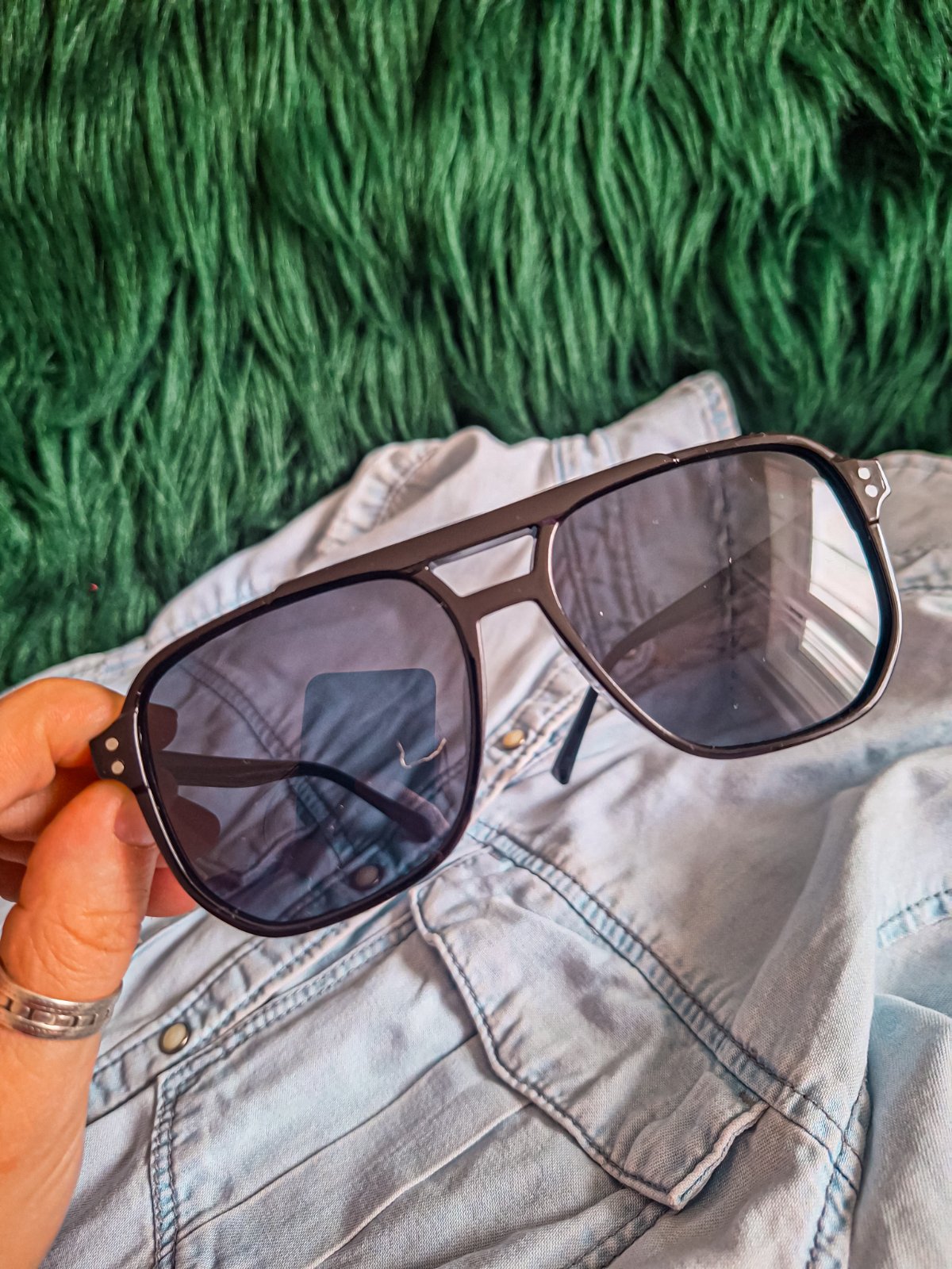 čierne slnečné okuliare , na štýl - pilotky