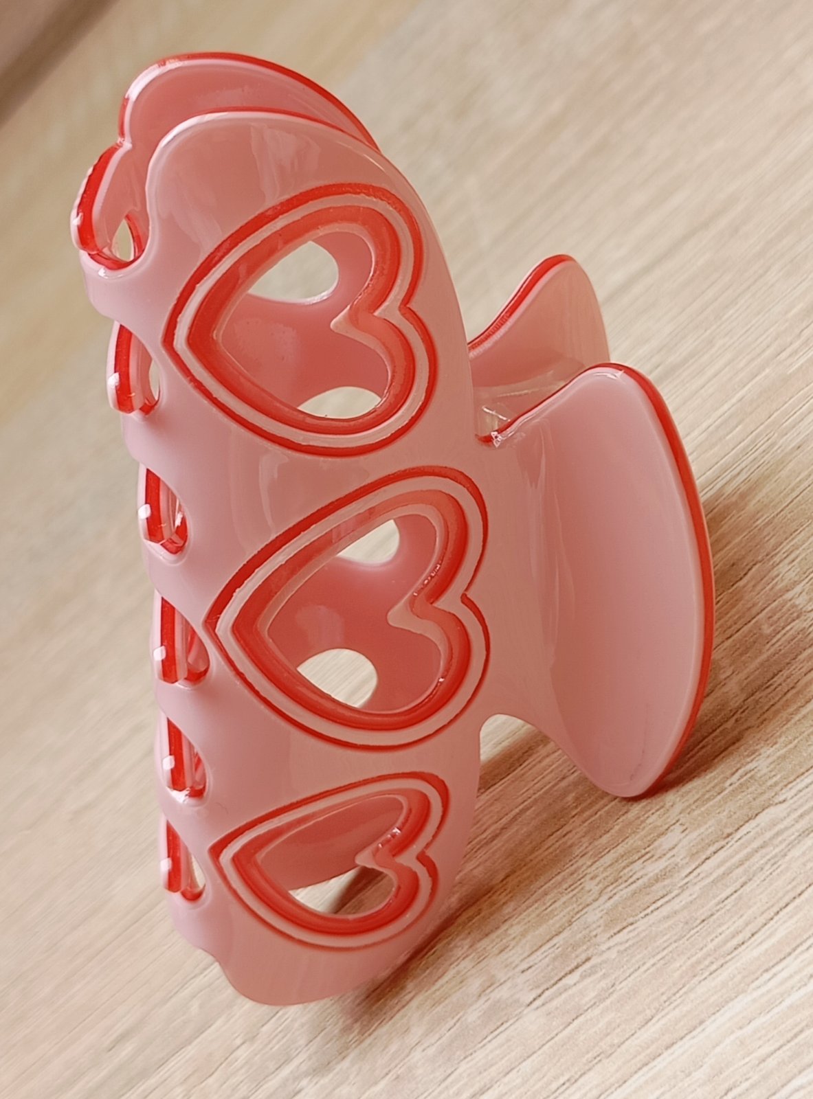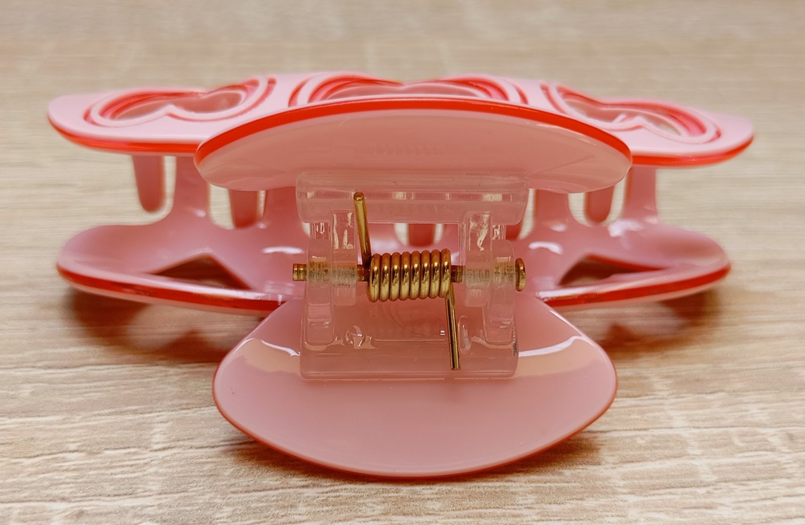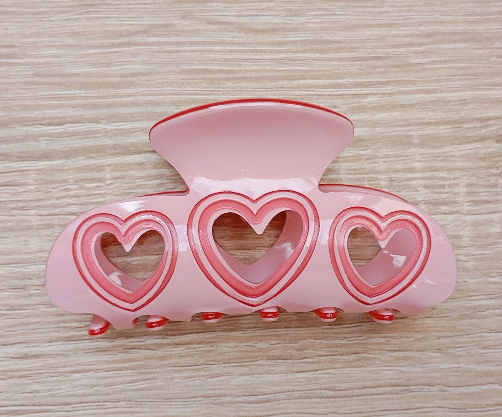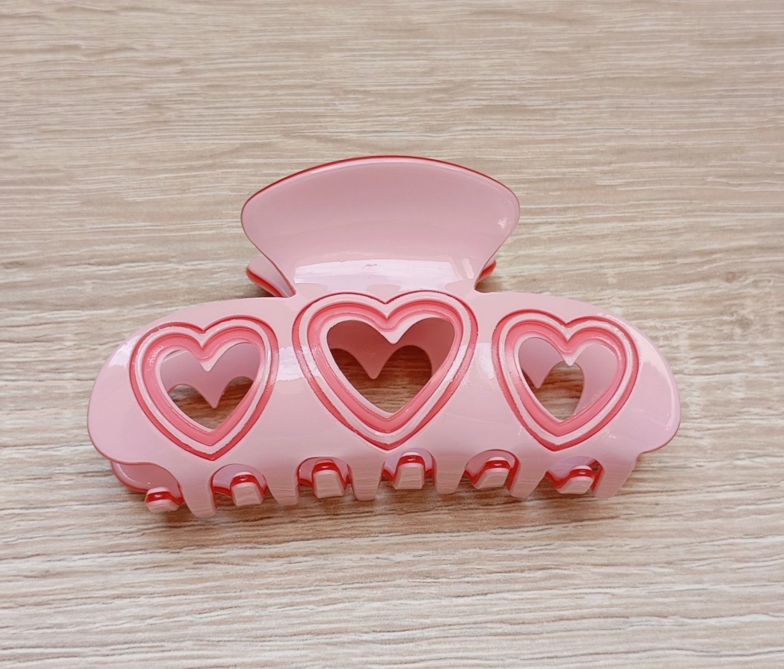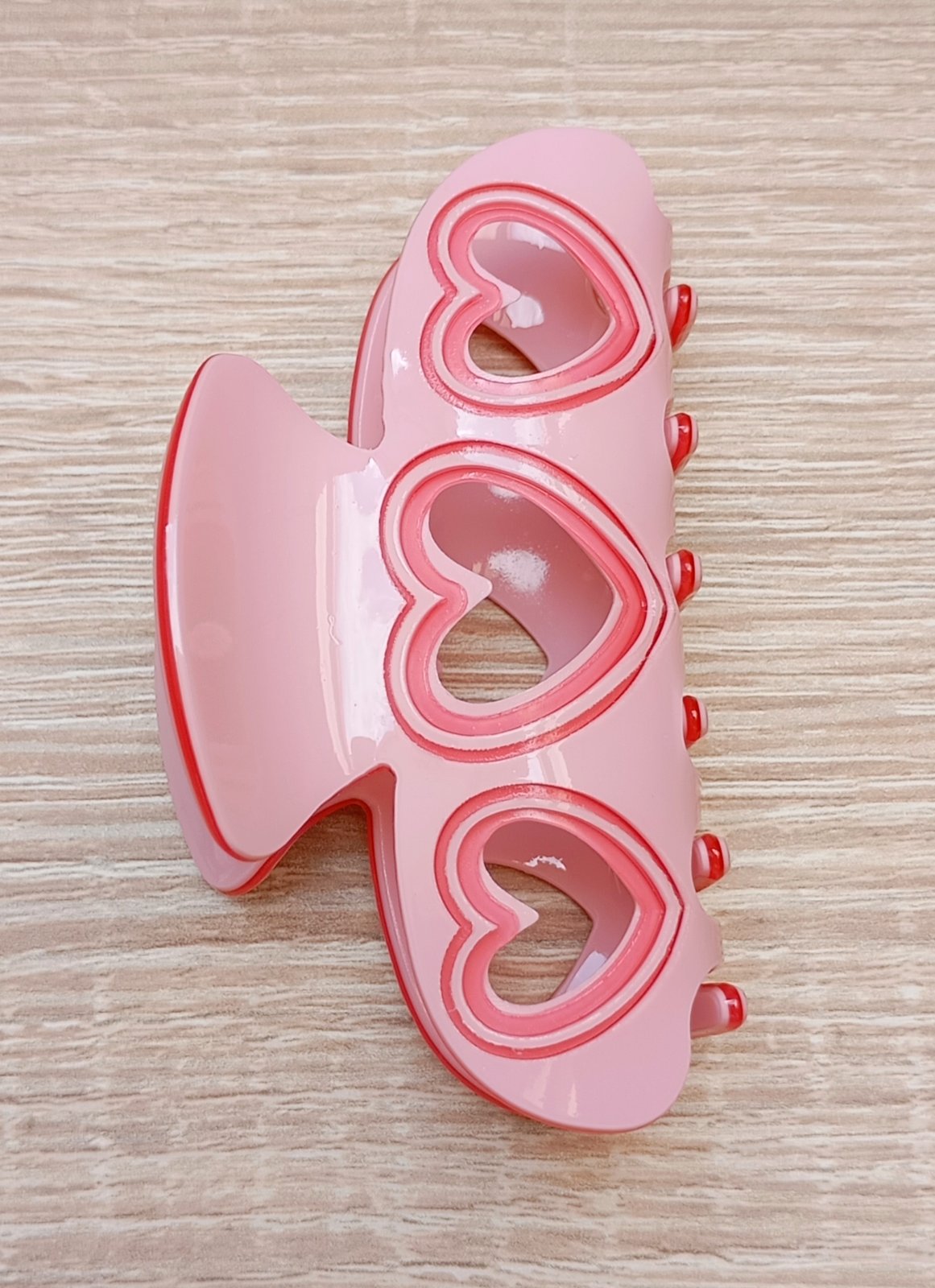 Svetloružový štipec do vlasov so šiestimi ozdobnými výrezmi v tvare srdiečok (3 na každej strane).