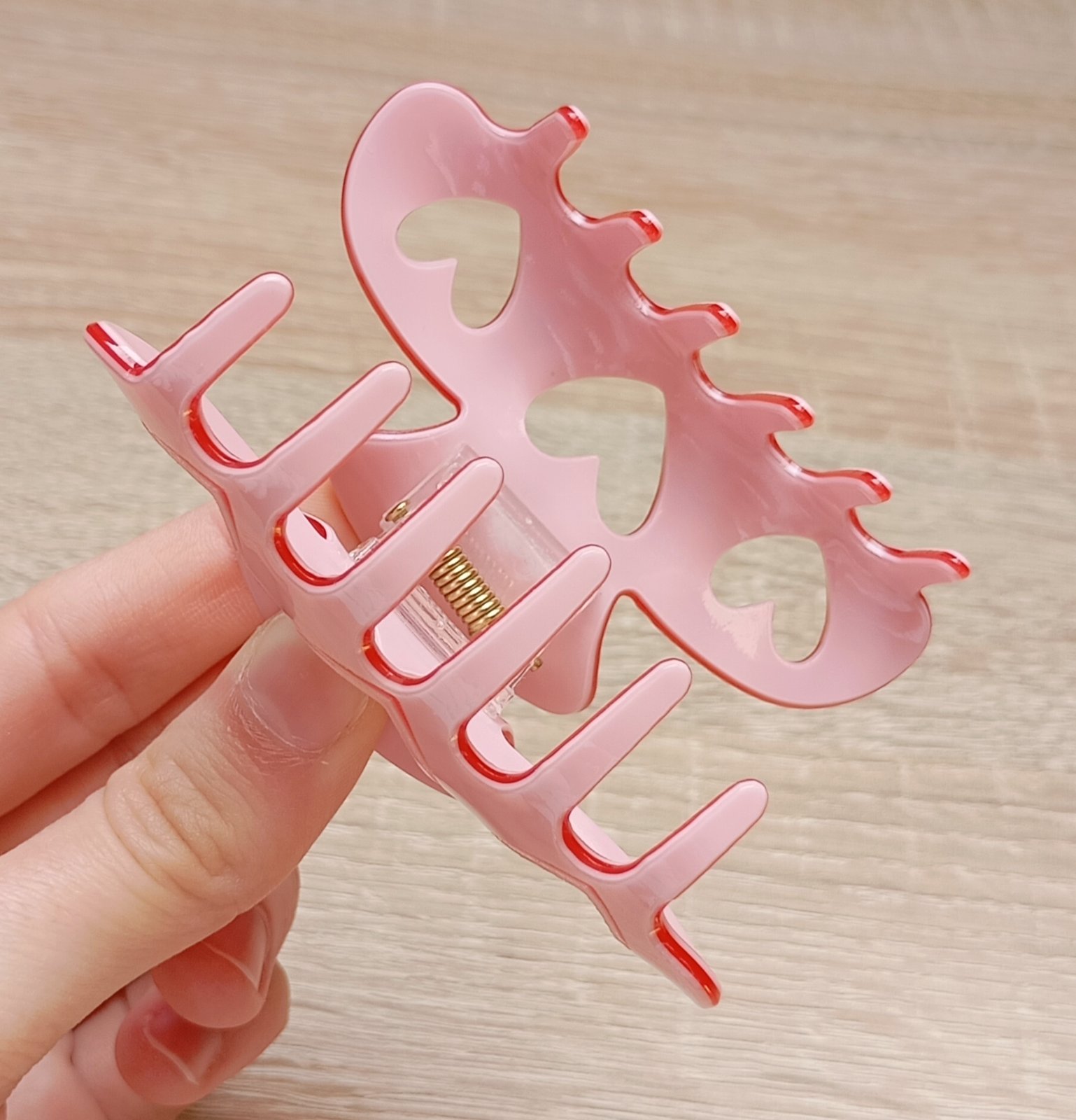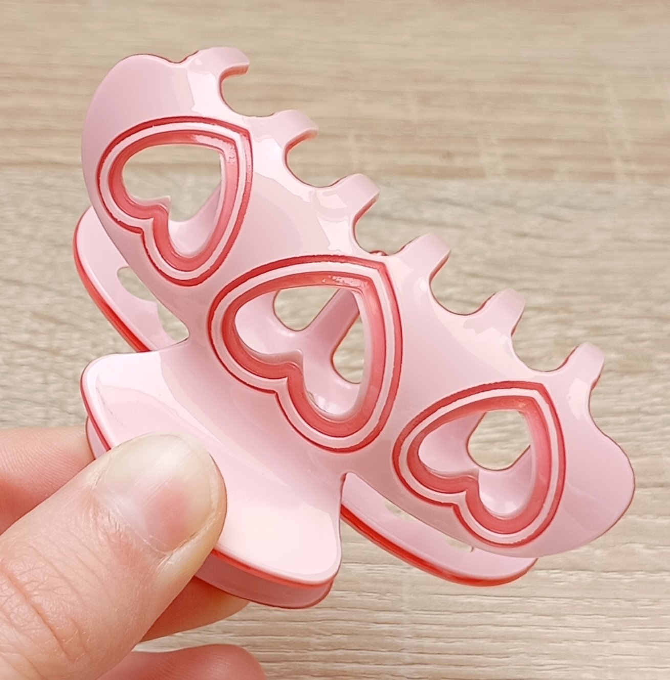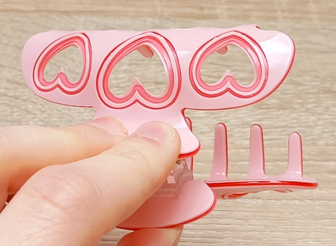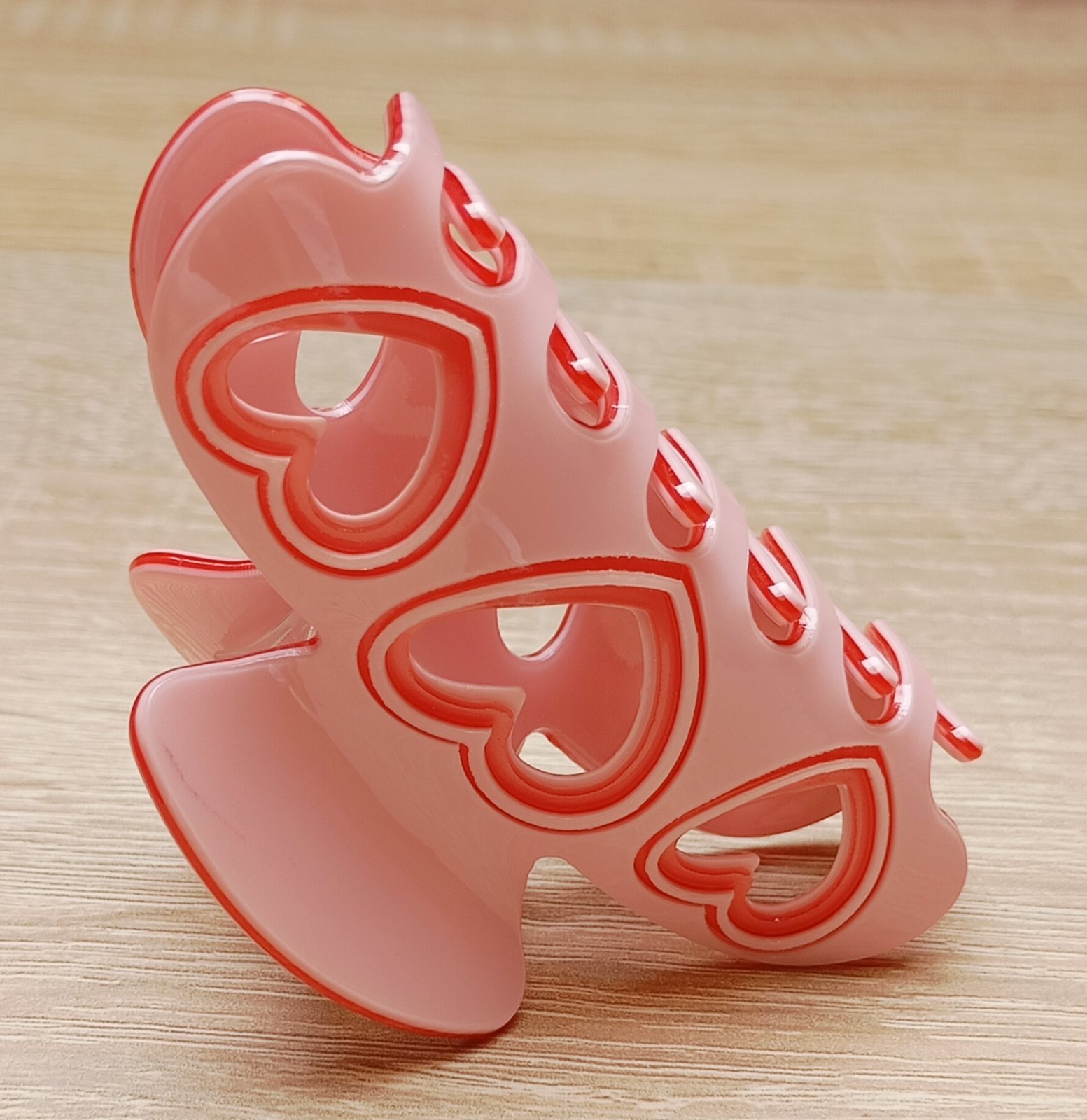 Svetloružový štipec do vlasov so šiestimi ozdobnými výrezmi v tvare srdiečok (3 na každej strane).