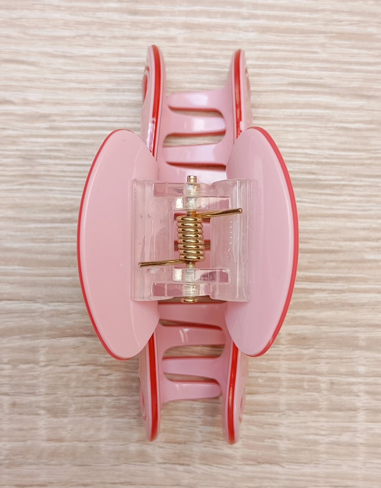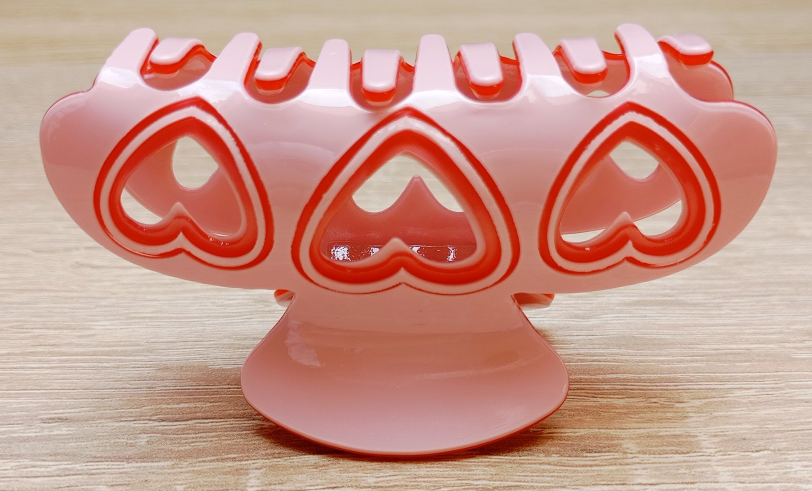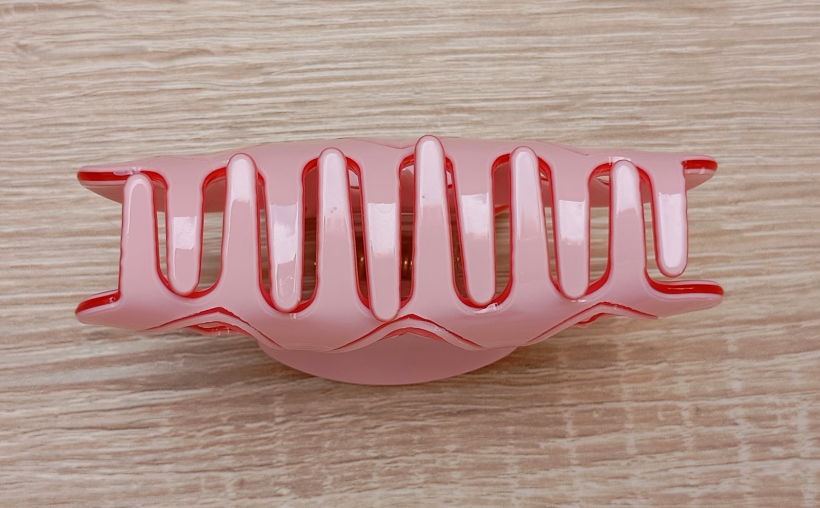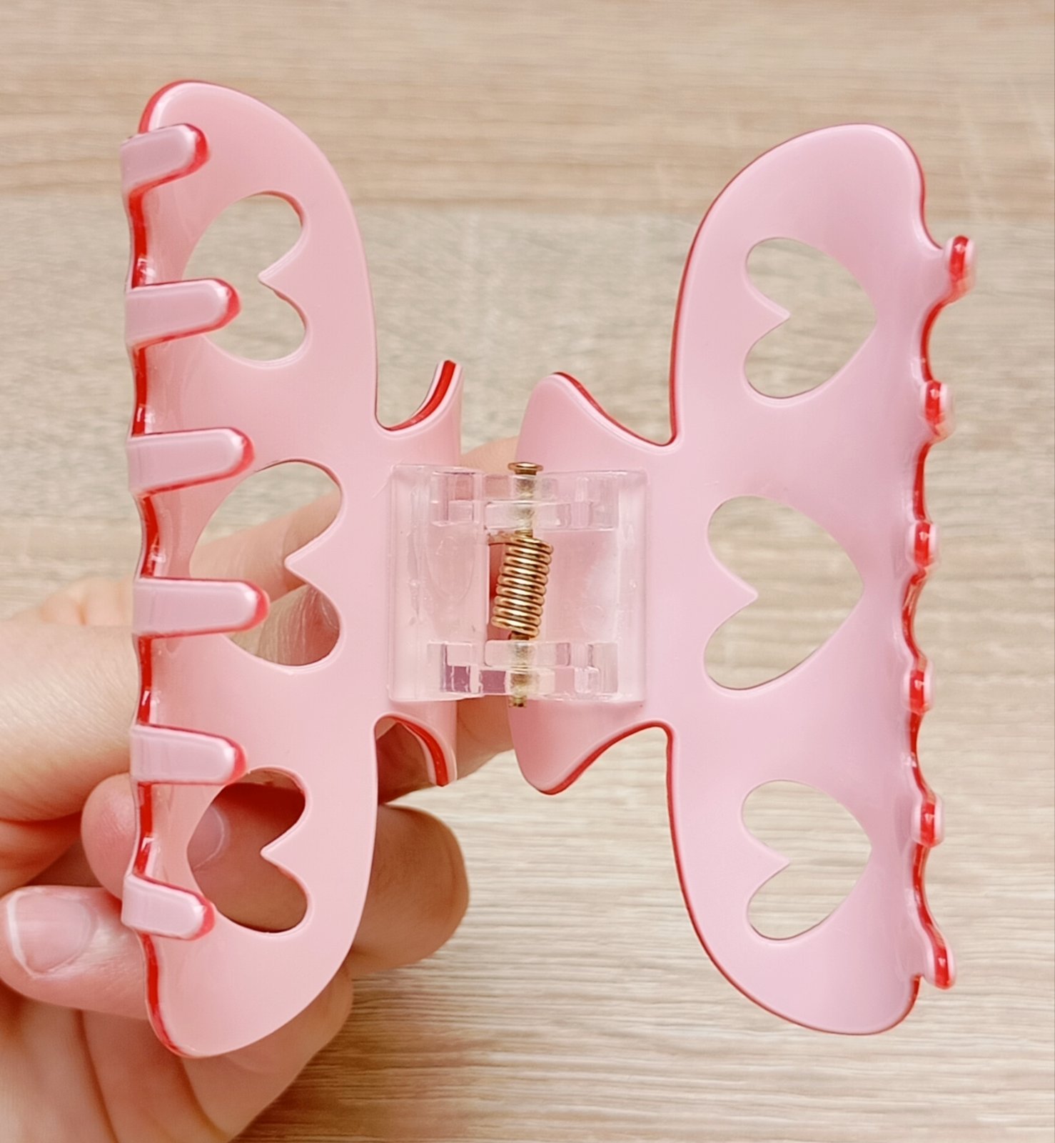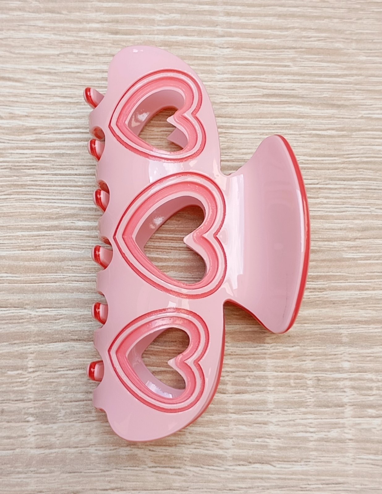 Svetloružový štipec do vlasov so šiestimi ozdobnými výrezmi v tvare srdiečok (3 na každej strane).