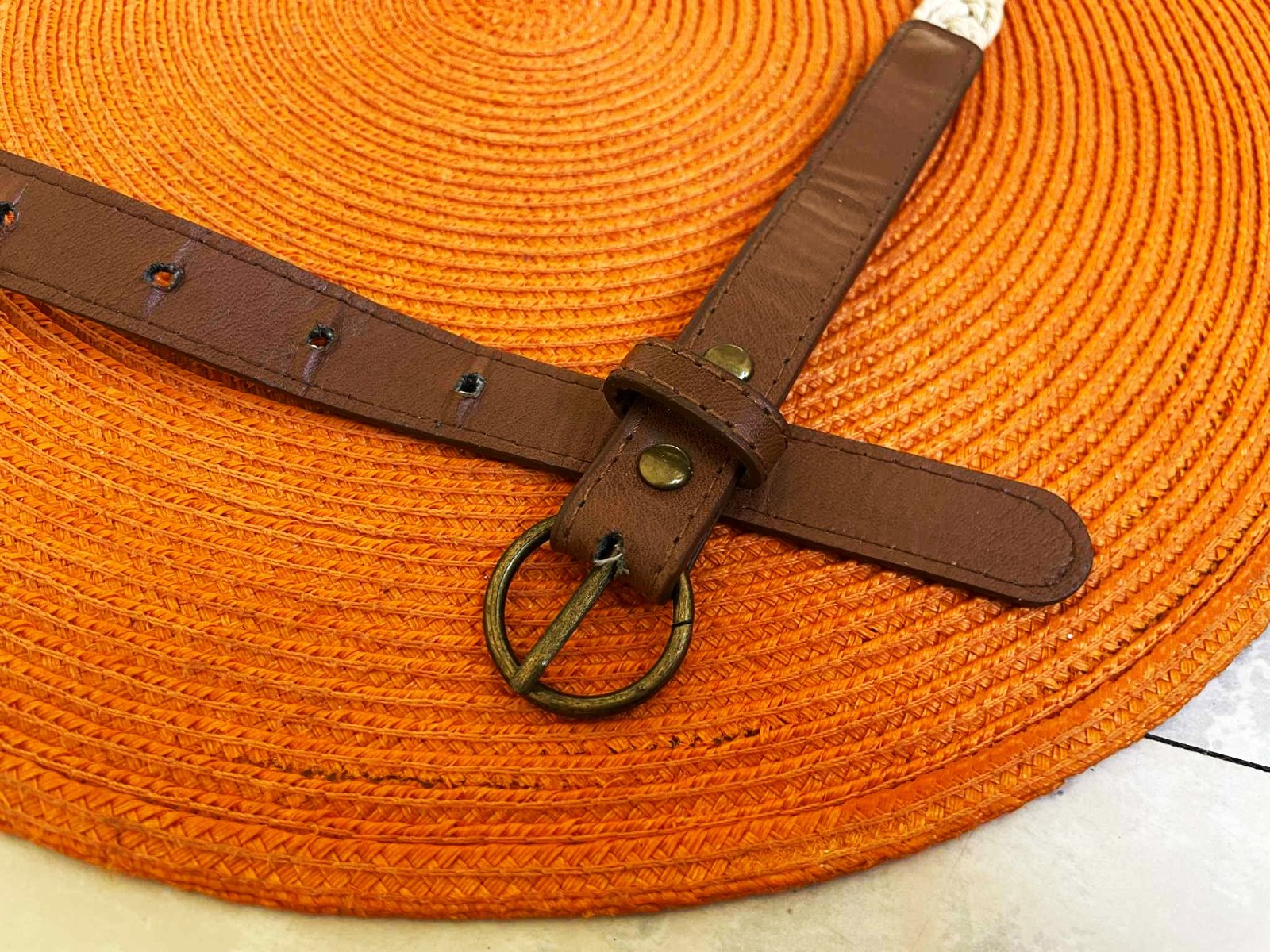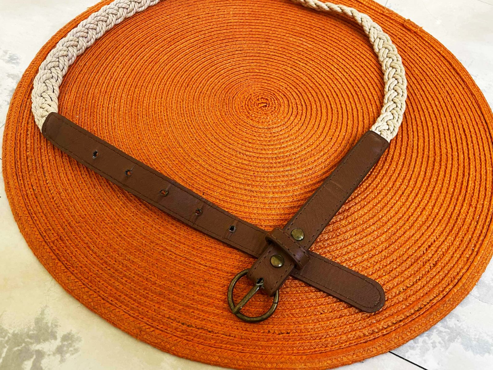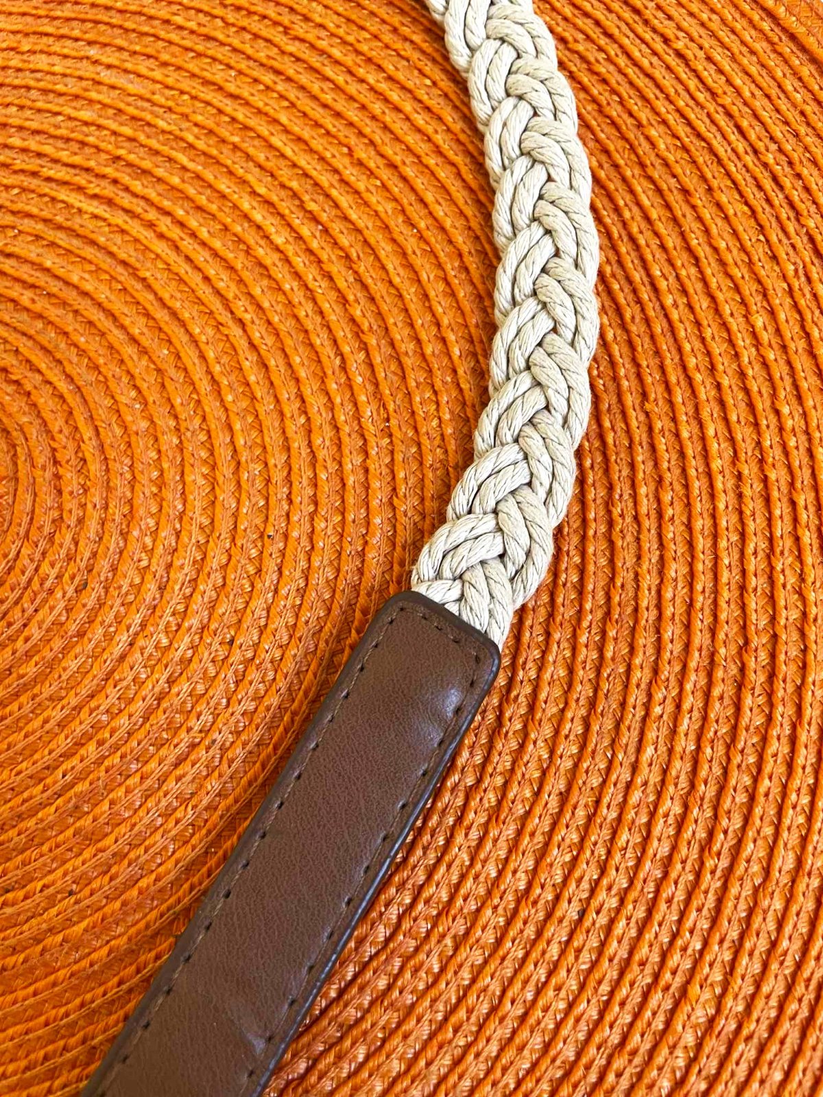 moderný naturálny opasok,smotanovo biely - prírodný odtieň s hnedou koženkou,dlžka = 98 cm, šírka 2 cm