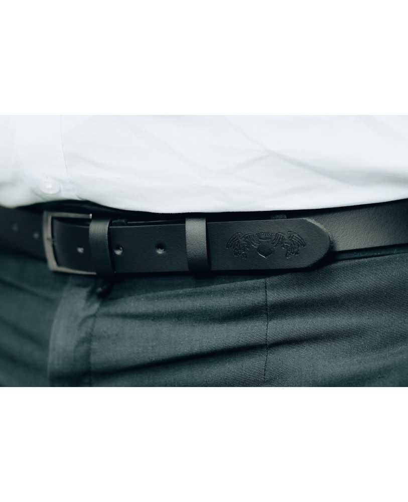 Elegantný pánsky opasok z pravej kože v čiernej farbe. Kvalitné spracovanie, pevná pracka a nadčasový dizajn vhodný na každodenné nosenie aj k obleku.Pánsky kožený opasok BELTIMORE je ideálnym doplnkom pre mužov, ktorí si potrpia na kvalitu a štýl. Vyrobený je z pravej hovädzej kože, ktorá zaručuje dlhú životnosť, odolnosť a pohodlie pri nosení. Čierna farba a klasická kovová pracka dodávajú opasku univerzálny vzhľad, ktorý sa hodí ku každému outfitu – od džínsov až po elegantné nohavice.