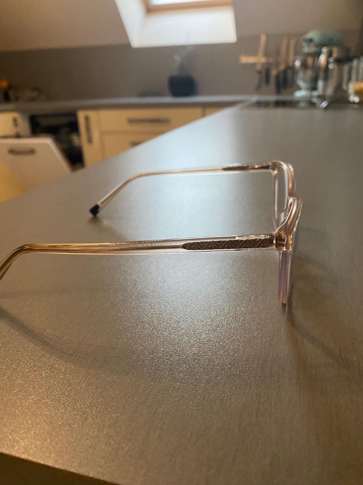 dobre sadnúce okuliare ,výborne sedia na tvári,farba priesvitná jemne žíhaná béžovou, plastové,na príležitostné použitie,veľmi ľahké,skladné.