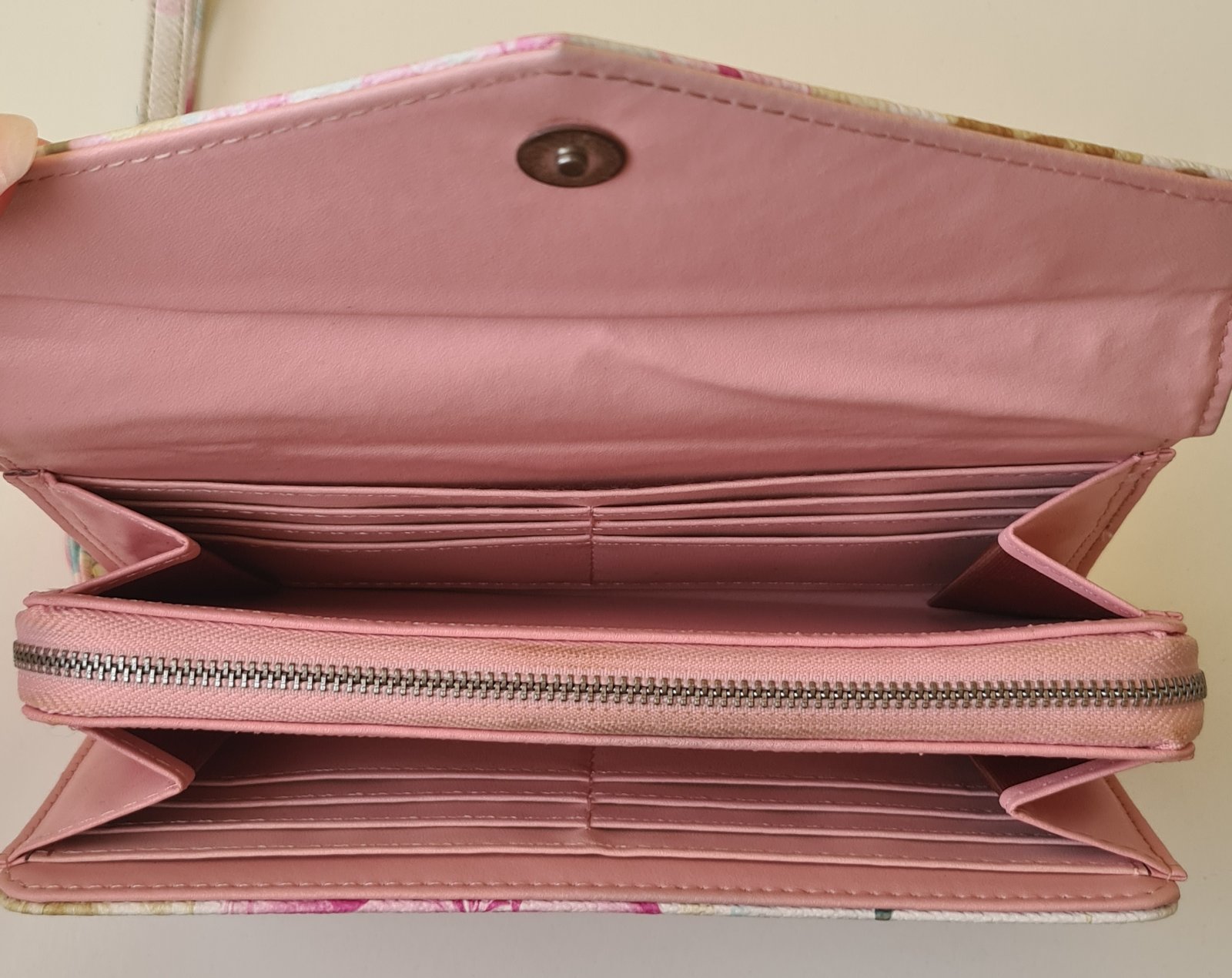 Krásna a praktická peňaženka v 100% stave. Dá sa použiť aj ako malá kabelka, keďže má uško. Cena 8€ plus poštovné.
