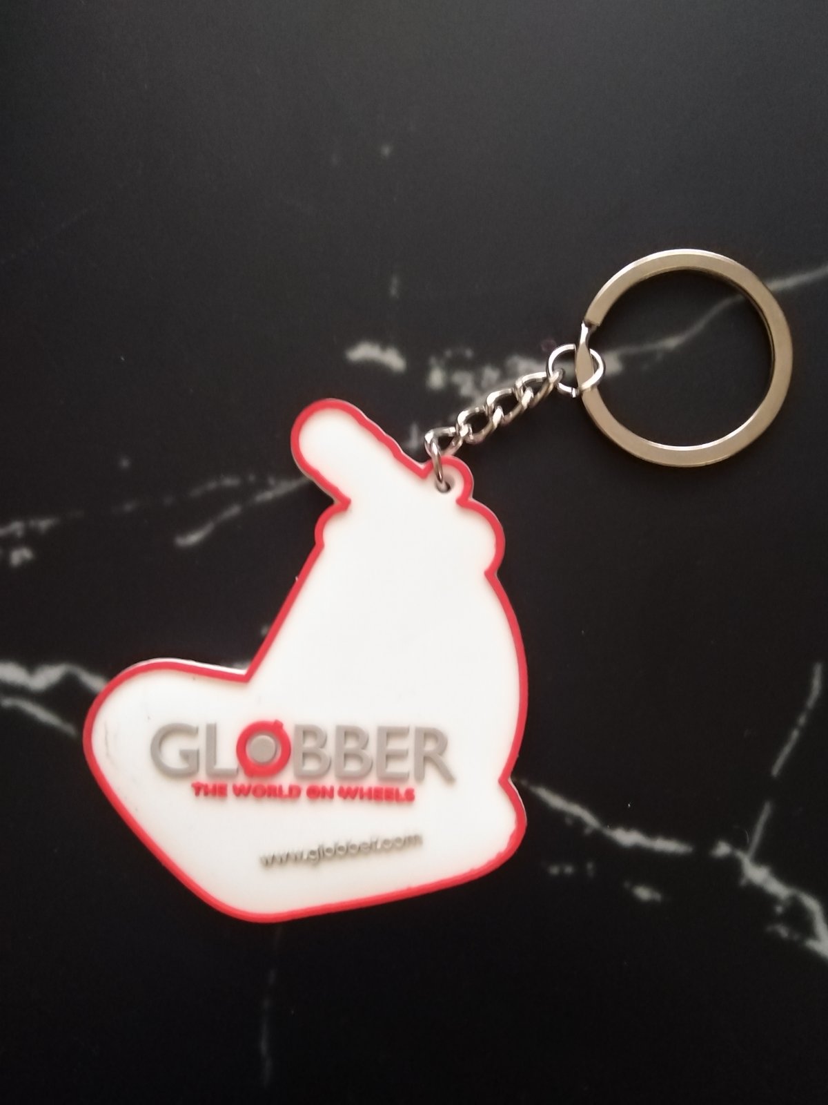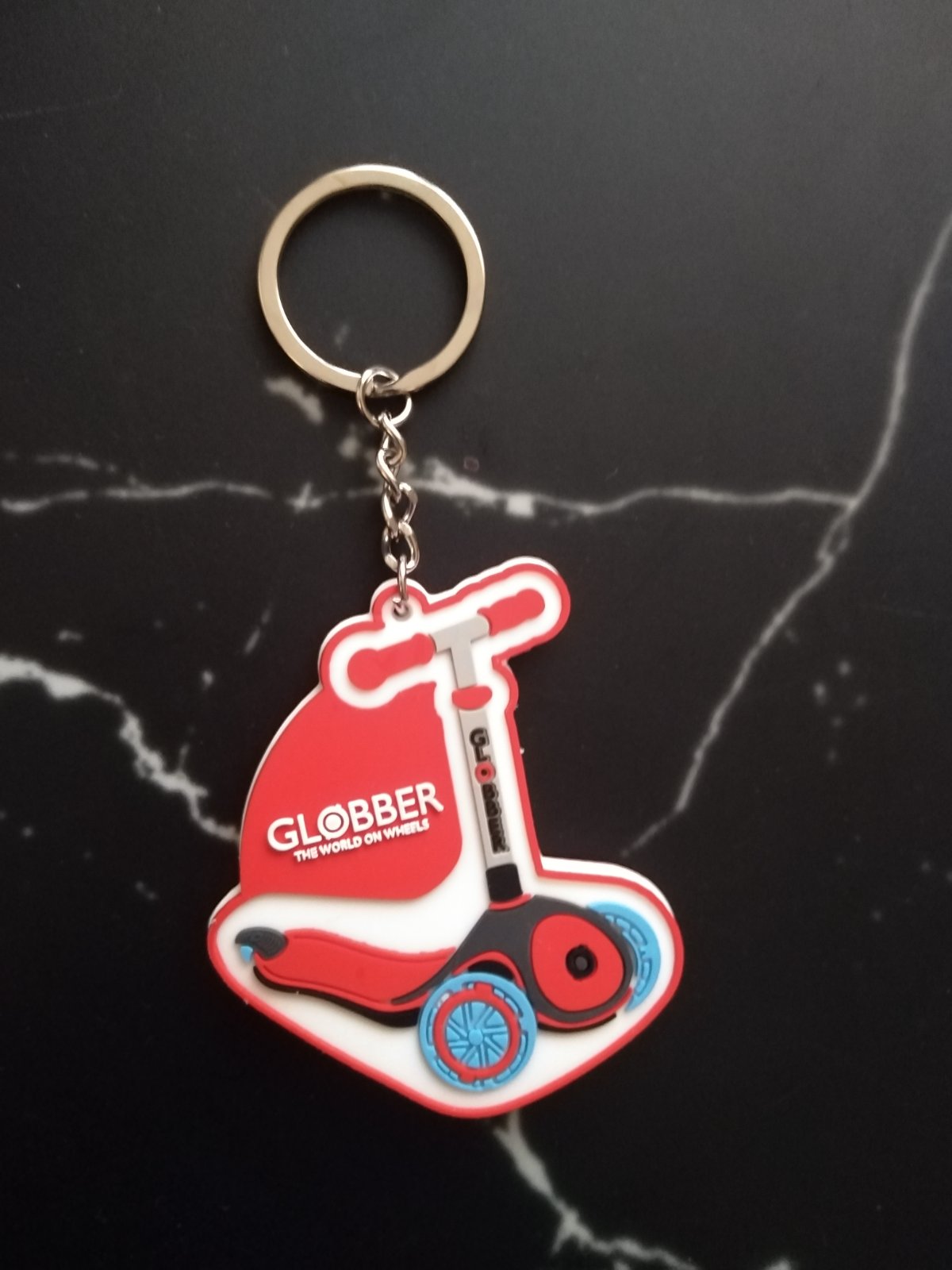 Prívesok na kľúčenku, gumený, nepoužívaný, s motívom kolobežky.